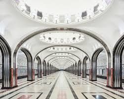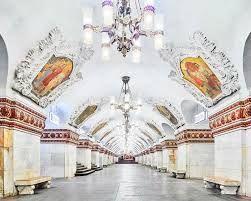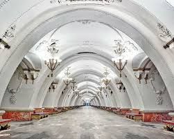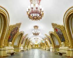 One of Stalin’s many projects was the Underground Metro, and for a Metro line there have to be underground stations, and these stations were not regarded as mere stop points but something of significance. They were to reflect the socialist concepts of “svet” and “sveltloe budushchee”, meaning light and bright future, and that is how those underground stations ended up like hallways from a Soviet Imperial Palace.