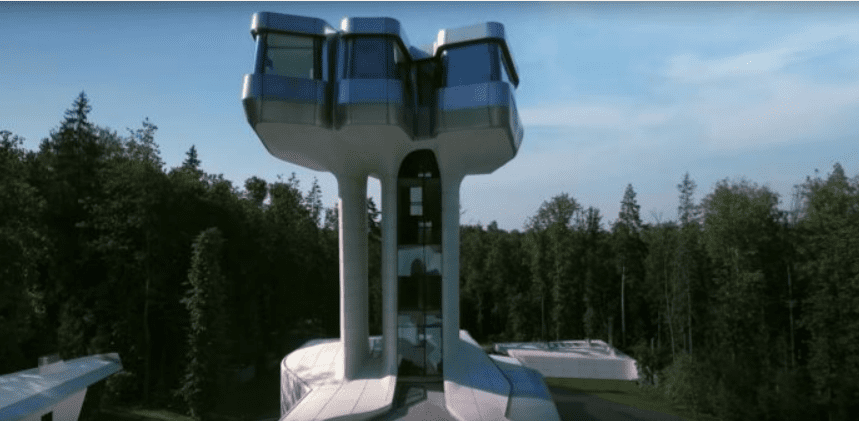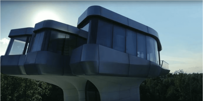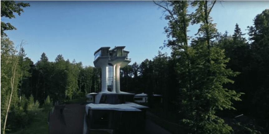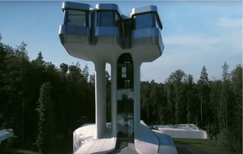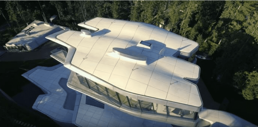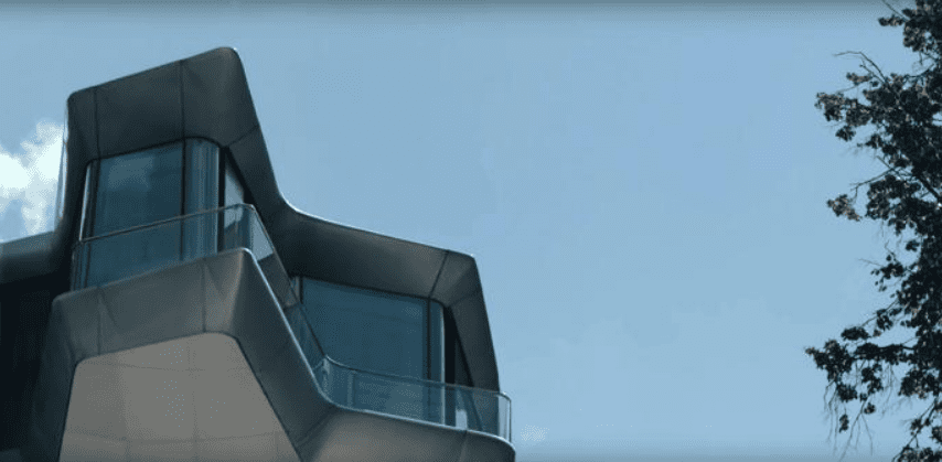 Capital Hill Residence, another project by Zaha Hadid Architects, Capital Hill Residence in Moscow, Russia, is a building that emerges from the landscape while remaining partially embedded in the hillside. With an area of 2,650 square meters, the villa is strategically placed to merge with the sloped landscape. To take advantage of the breathtaking views of the Barvikha forest, a separate volume floats 22 meters above the ground. Over all the general design concept was to extend the exterior topography to the interior of the building, while geometrical definition was derived from the surrounding environment, in order to create a continuous integration between interior and exterior spaces.