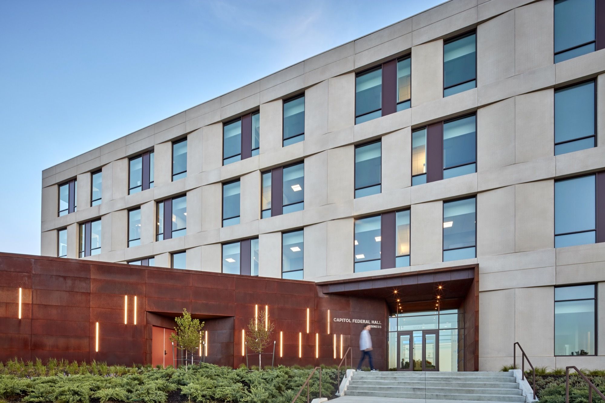 Located at the heart of KU’s campus within sight of Allen Fieldhouse, home to KU’s legendary Jayhawks Basketball, Capitol Federal Hall aligns itself with high performing institutions and acts as a dynamic gateway for students, alumni, faculty and visitors alike. The building’s central location positions it to connect KU’s older campus on the north and east to its newer campus on the south and west. Capitol Federal Hall is intended to be a building for the entire campus, not just for those in the School of Business.