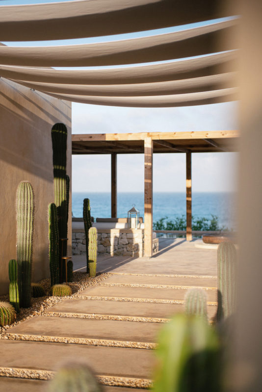 Capo resort makes a grand entrance with majestic cacti and elegant white canopies guiding guests into the main outdoor area. Here, a cozy cushioned majlis encircles a central firepit, creating a welcoming atmosphere. As evening falls, guests are encouraged to indulge in stargazing near a serene longitudinal pool adorned with water lilies. This not only evokes a feeling of tranquility but also frames a breathtaking view. Capo design purposefully maintains an unobstructed connection with the sea and sky throughout the property, symbolically honoring the Phoenicians who were skilled sailors and adept celestial navigators along these very shores.