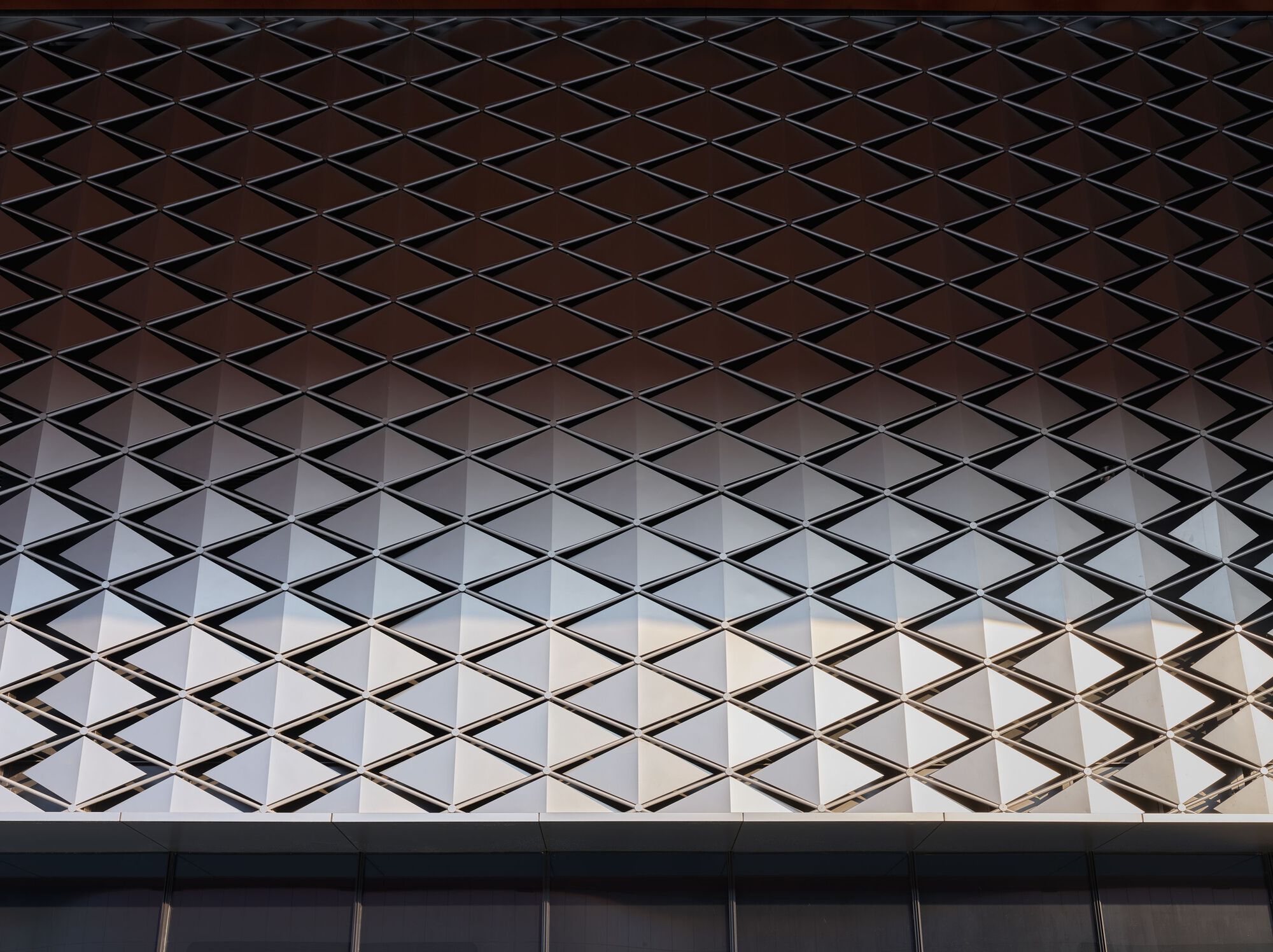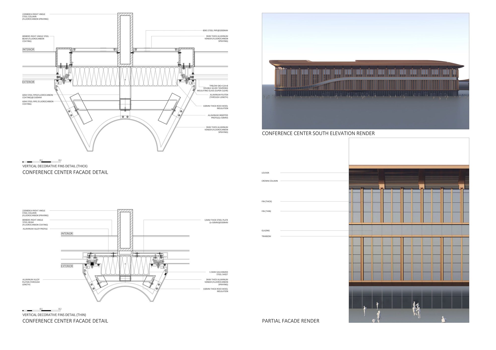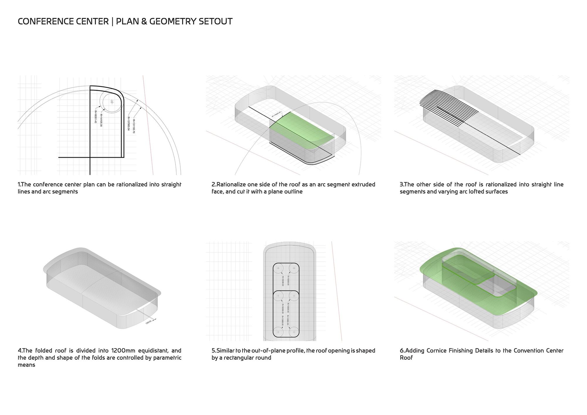The CIECC’s composite roof system of symmetric geometries creates an insulated, lightweight, large-span structure providing column-free spaces that can be quickly adapted to changes in exhibitions and nature of use. This modular fabrication and construction minimized the center’s development time, investment, and operational costs. The center’s fluid architectural language and pleated, deep copper-colored façade incorporating large, recessed windows, have been designed to balance the CIECC’s immense industrial scale and materiality.