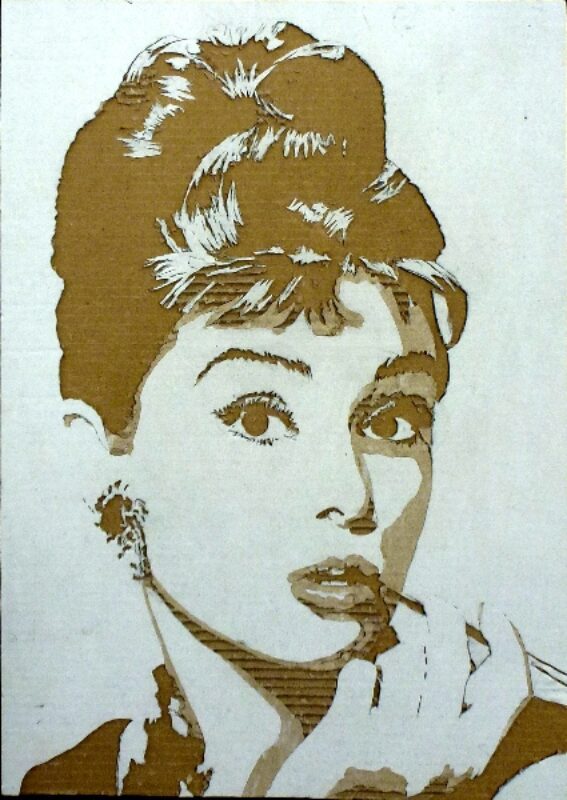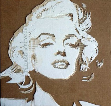 His pieces mainly depict pop icons, like movie stars or celebrities, and each piece is sold separately.Apart from his skillfulness in exposing the beauty in such an unexpected material, what makes his pieces even more enjoyable is this cleverly positioned phrase: ‘PLEASE RECYCLE’ in a few of the portraits.