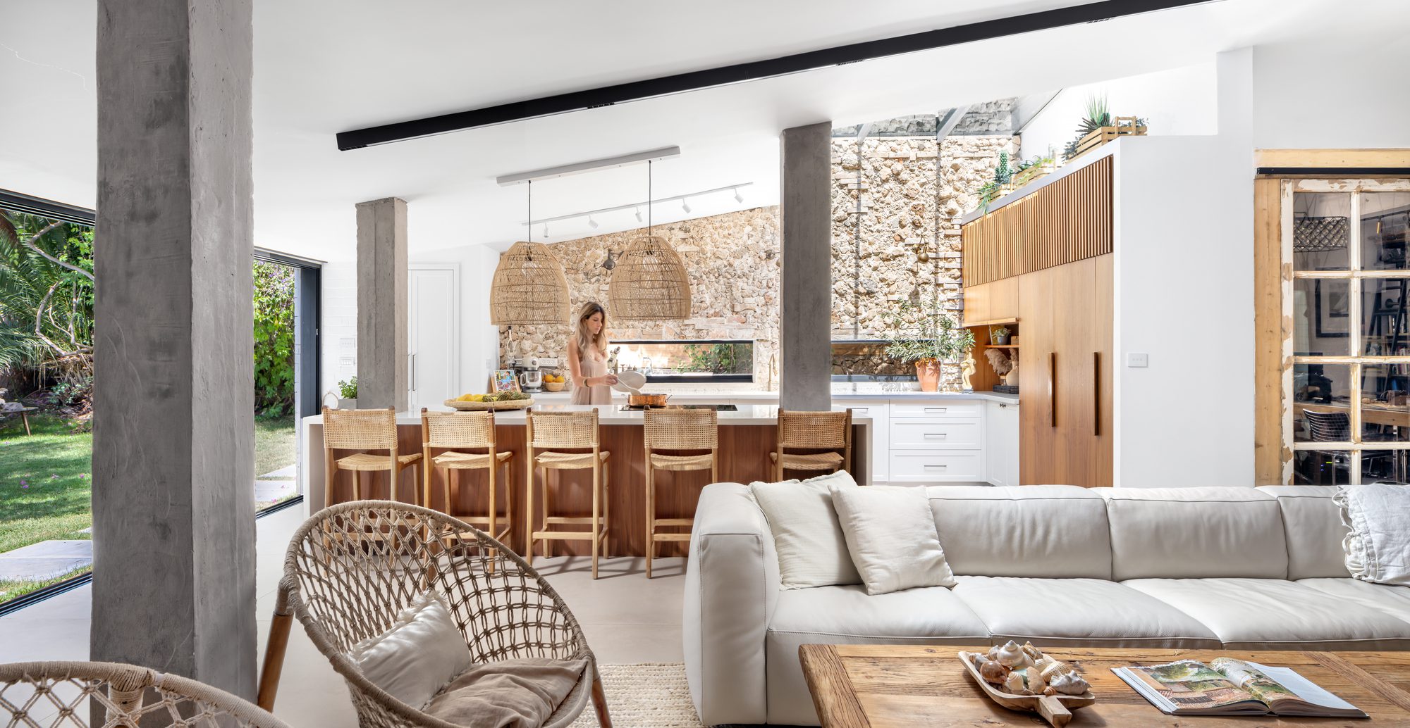 Among the inspirations for the design of the house was a visit to Africa that influenced the planners and led to the decision, to honor the raw materials and simplicity as core elements of the design and also proximity to the beach and the salt in the air from the ocean much effected. Additional elements that constitute a guideline for all DARchitecture projects and in particular for this project, are the combination of contrasts, mixing styles, creating drama by using light and shadow, and introducing nature and greenery into the home.