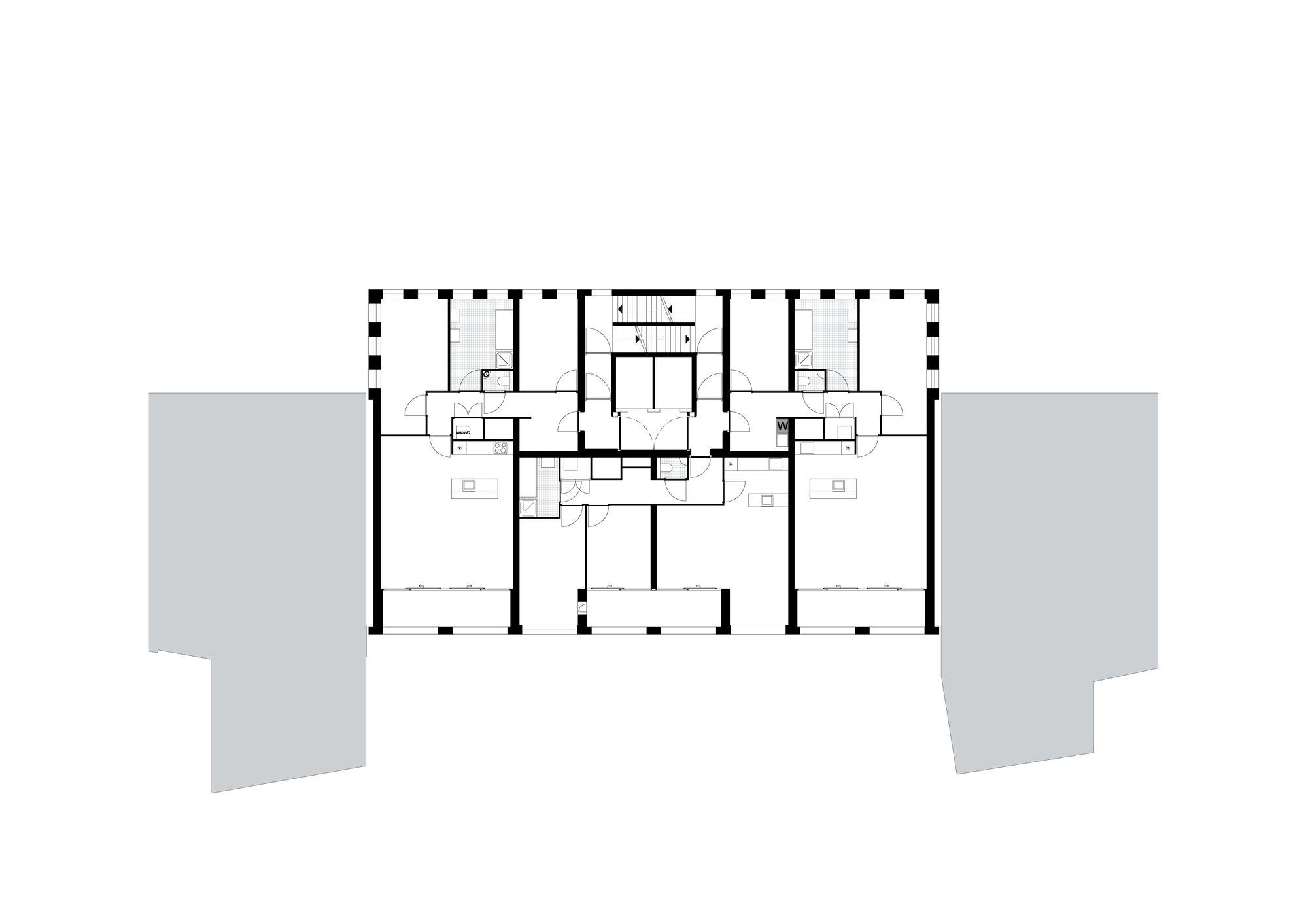Sophisticated living. The appearance and materials support the generous, chic character that we wanted to emphasize in the building and its surrounding. You enter a marble and brass-clad entrance hall. By chamfering the facade of the building on the upper floors, the high tower elegantly blends into the surrounding buildings. In addition, the apartments in the upper part will have a spacious south-facing balcony and enjoy a panoramic view of Holland Park. The penthouse with high ceilings and high glass fronts on all sides give the building a cornice.