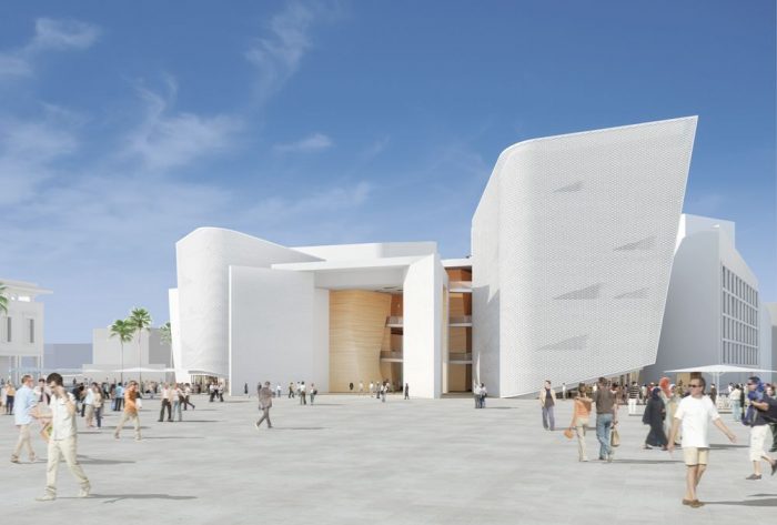 The vast Place Mohammed V in Casablanca, with its classic rectangular 1920’s composition inherited from Maréchal Hubert Lyautey and urban planner Henri Prost, is lined by Charles Boyer’s wilaya, the Courts of Justice and long administrative buildings. It is popular with the residents of Casablanca, who gather every day around its central fountain. On the square’s last free side the city decided to build “CasArts” which will be the biggest theater in Africa.