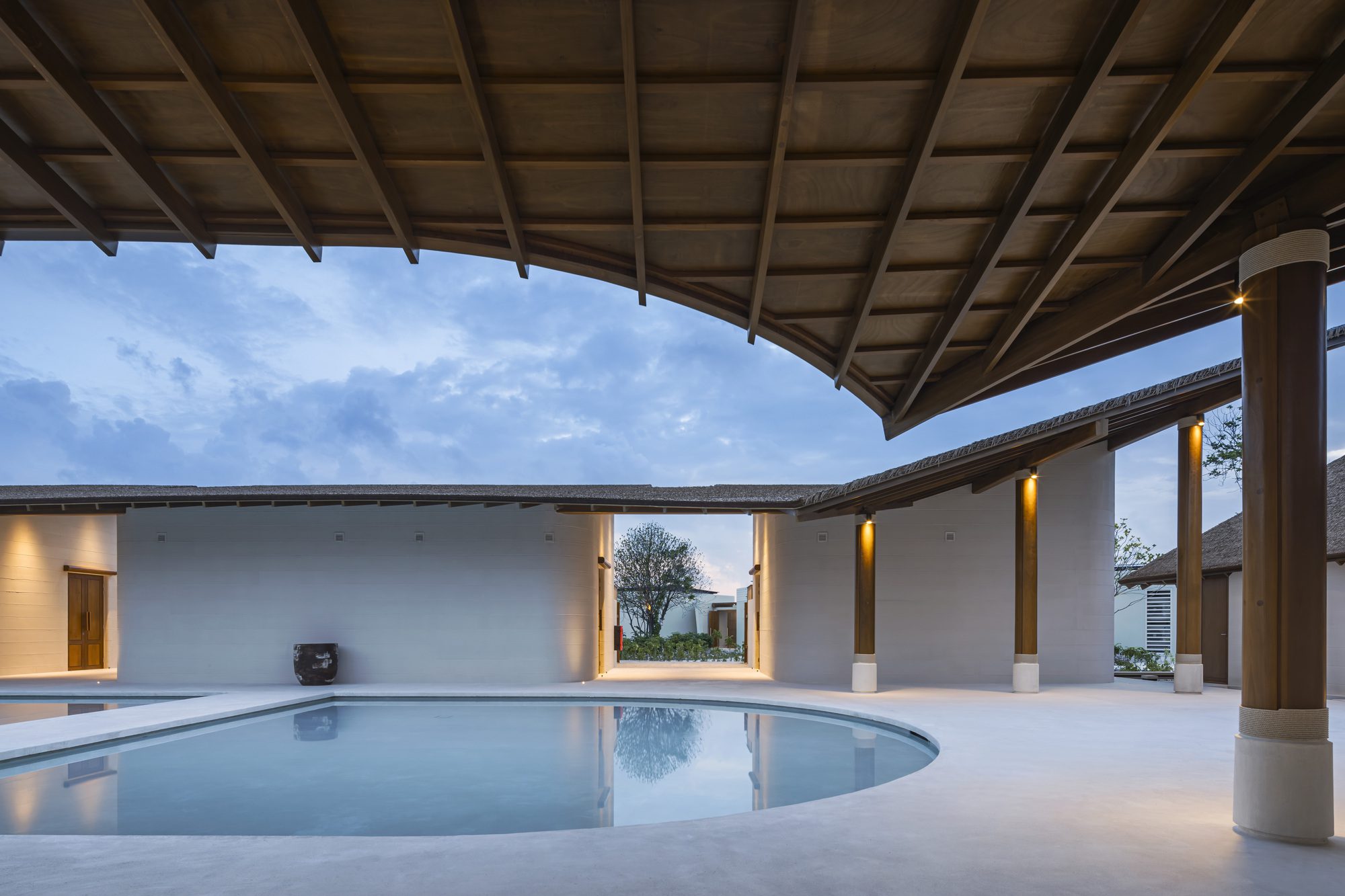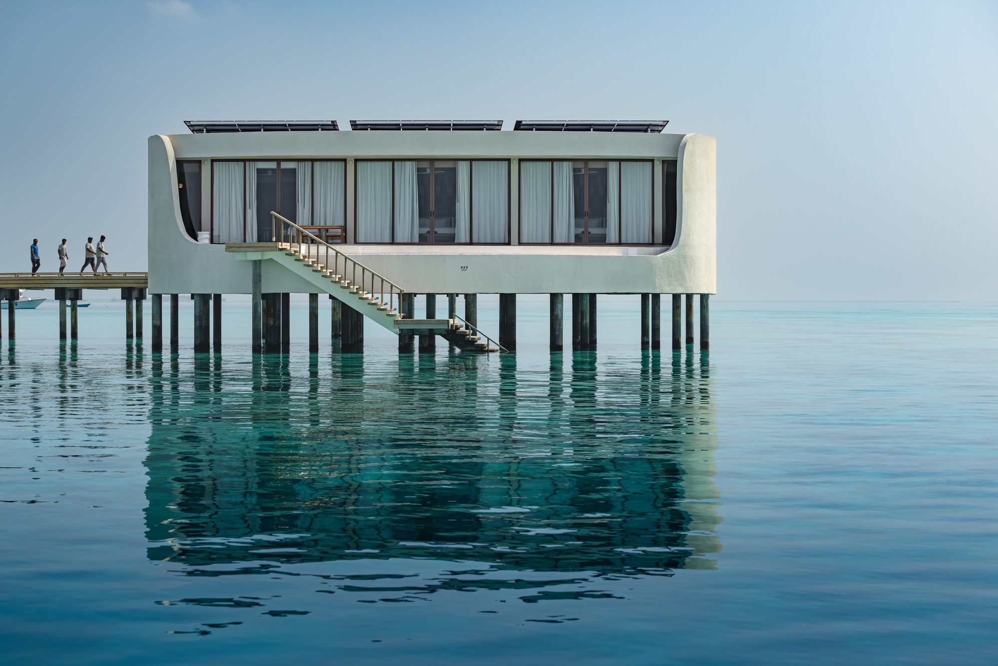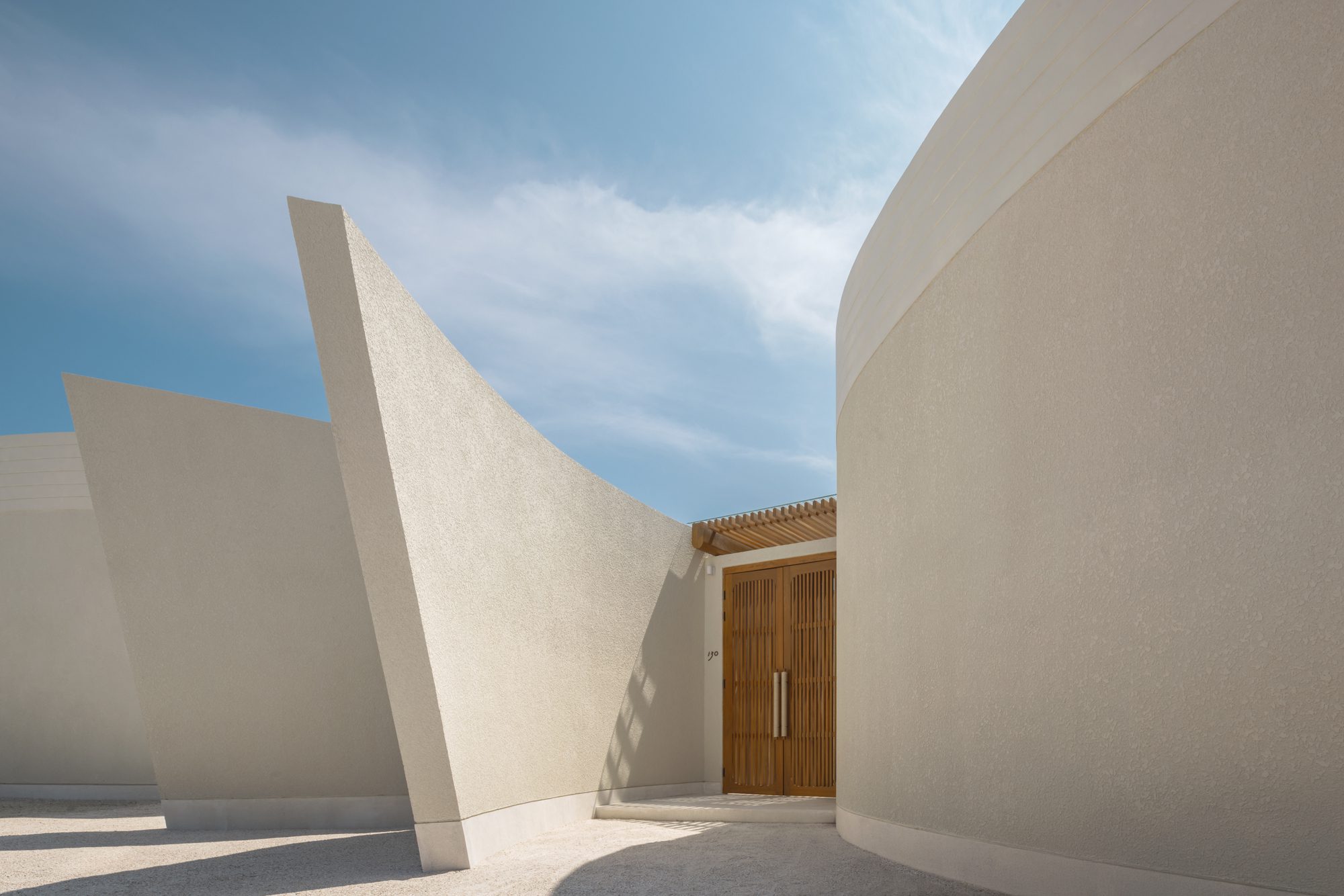 Each villa—whether set overwater or nestled among palm groves—speaks its own quiet language, while sharing a cohesive design grammar. Soft curves and sculptural forms establish a rhythm of openness and enclosure, allowing each space to feel simultaneously expansive and intimate. Framed pools, shaded terraces, and layered courtyards foster moments of retreat, contemplation, and direct engagement with the natural elements.