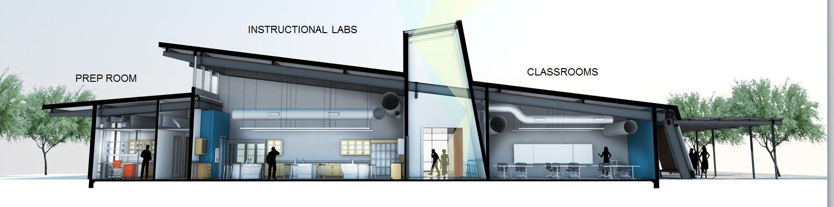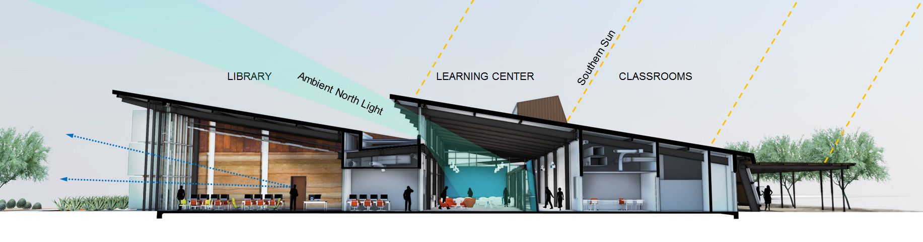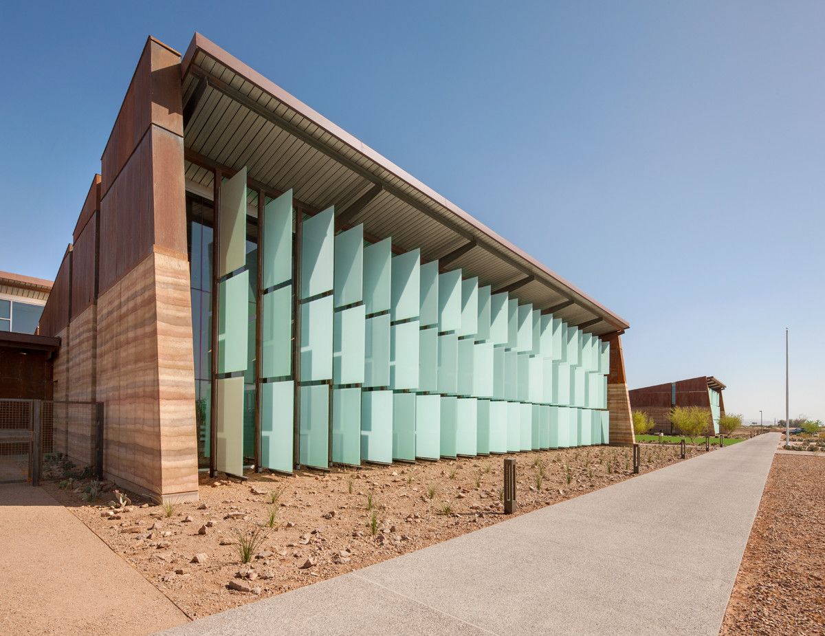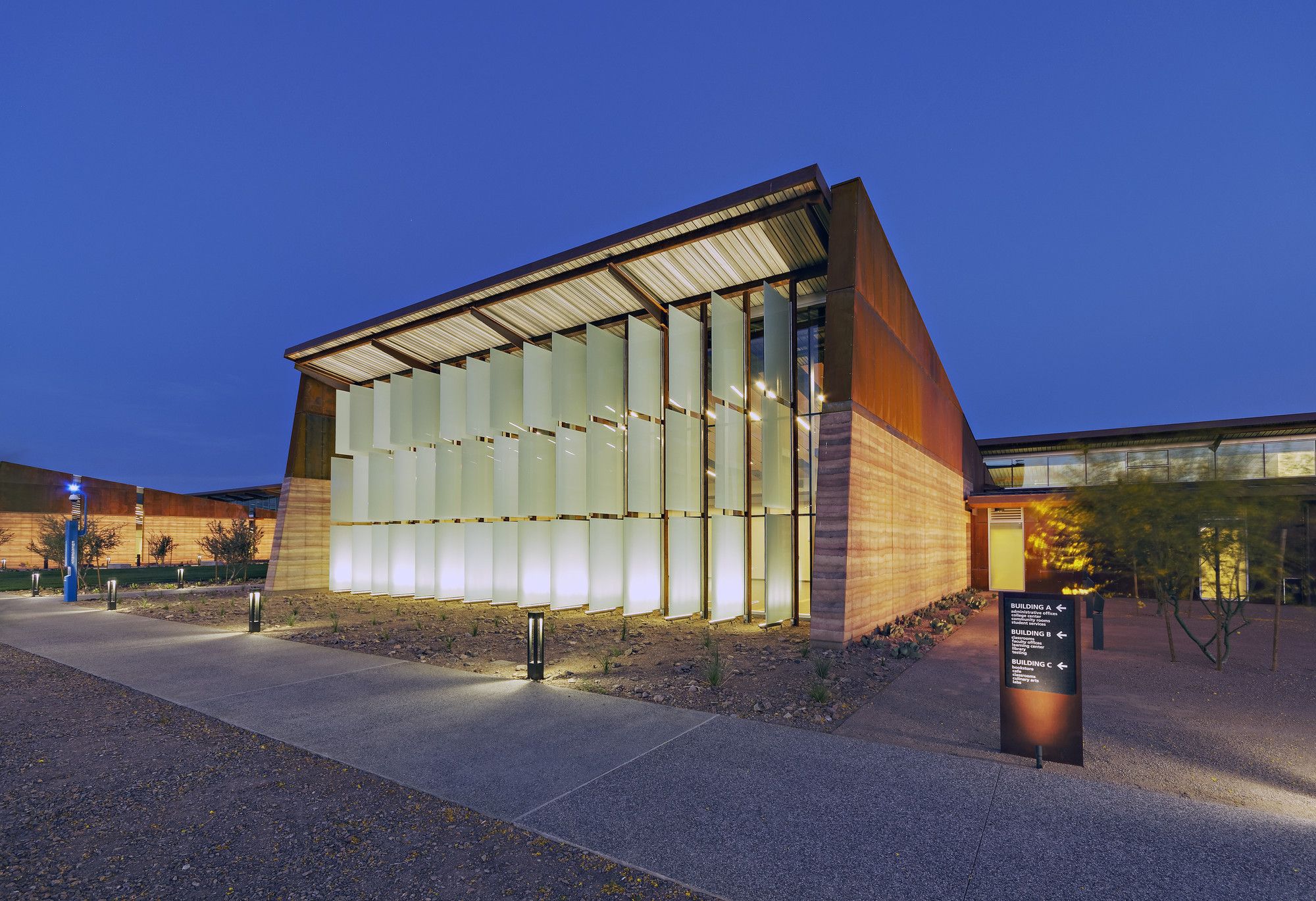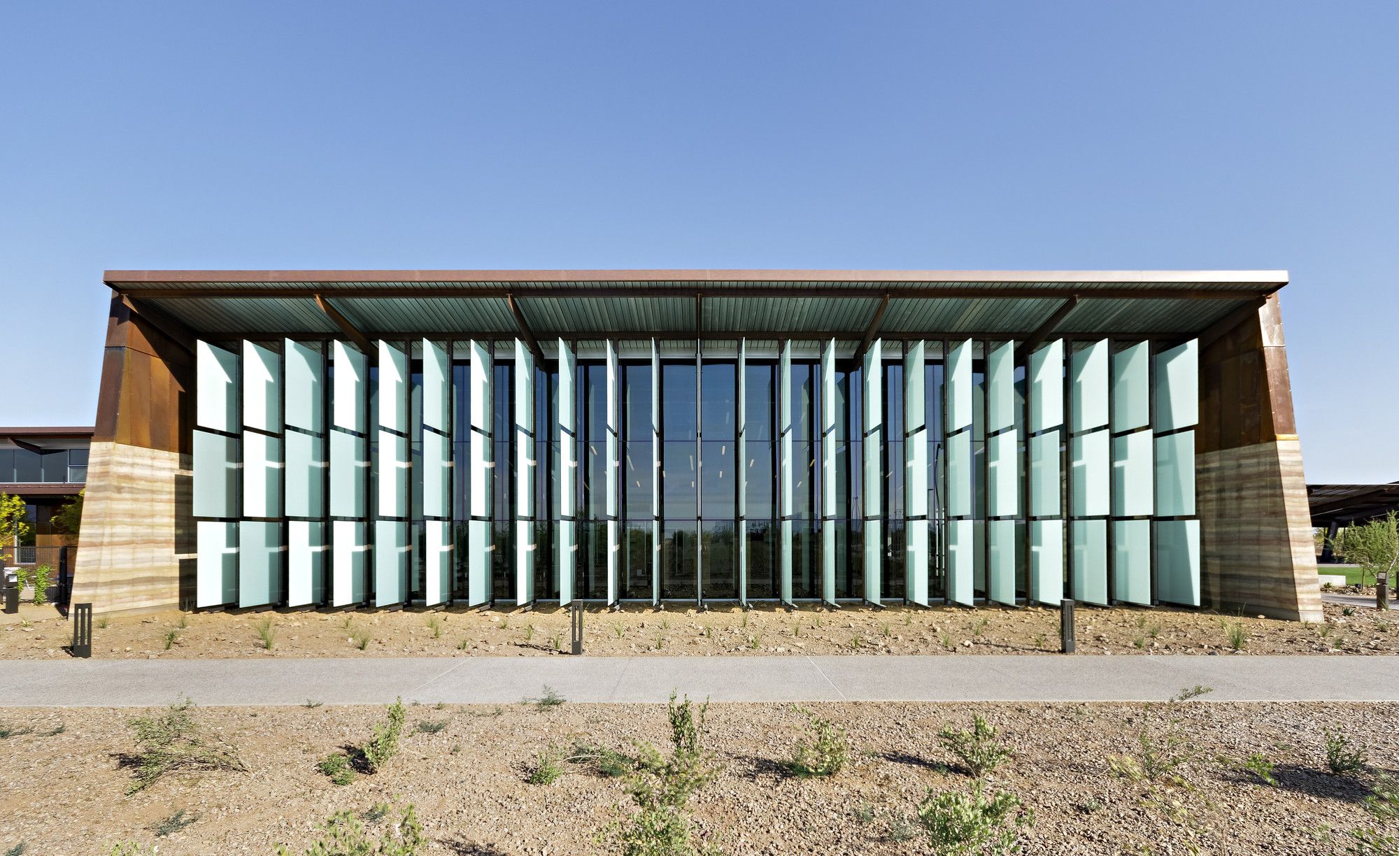 The architecture responds to its desert context through building positioning, use of glass and transparency, and solar shading systems. Site design draws inspiration from the desert arroyos, allowing for the effective flow of stormwater and pedestrians while uniting all edges of campus.