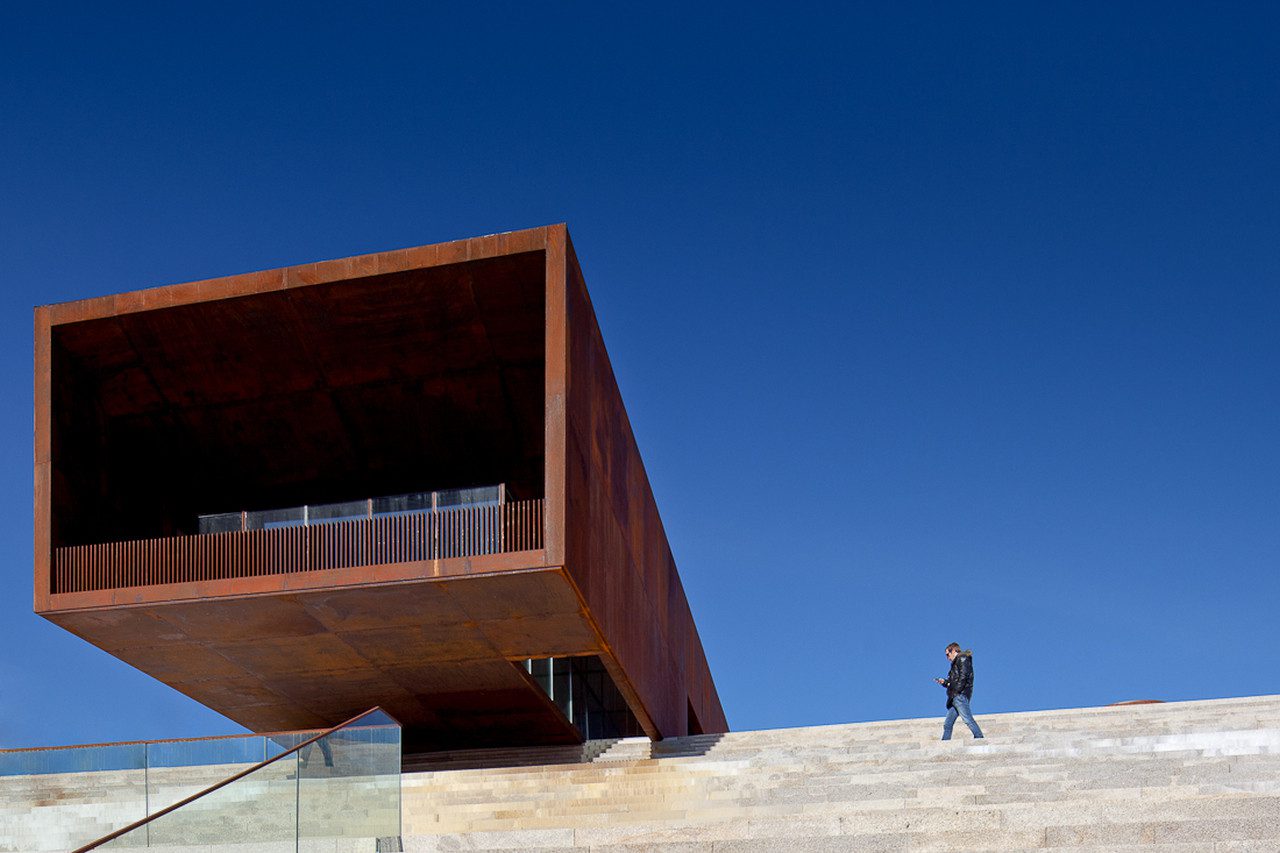 The new Pavilion, Park, Fair and Plaza of the Centro Multiusos de Lamego by Barbosa & Guimarães create interesting new public spaces for Lamego, Portugal while tying back and referencing the building and municipality’s sense of place. A contemporary, new facility, it still is at once of the town, completed in a palette of the locally used marble.
