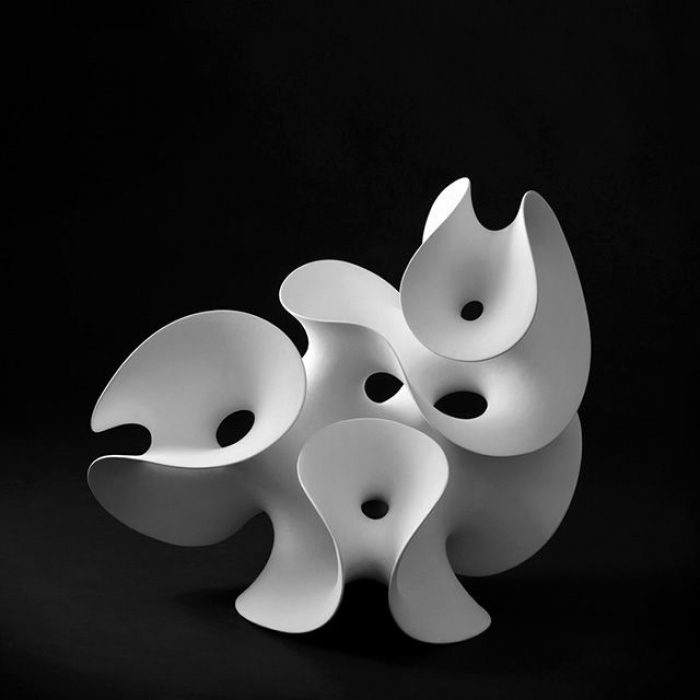 Smooth, Soft and Sexy ! Eva Hild is a ceramic sculptor who lives and works in the southwest of Sweden. Her works may be described as elegant topological forms that are reminiscent of minimal surfaces since the surfaces basically have a hyperbolic geometry. Through hand-building, Hild gradually builds up her sculptures, change their direction and make connections, making smooth surfaces all with the same thickness. When her forms are ready and the clay is dry, she sands away at the surface. Pieces are fired twice at stoneware temperature 1200 degrees celsius and finally treated with silicate color.