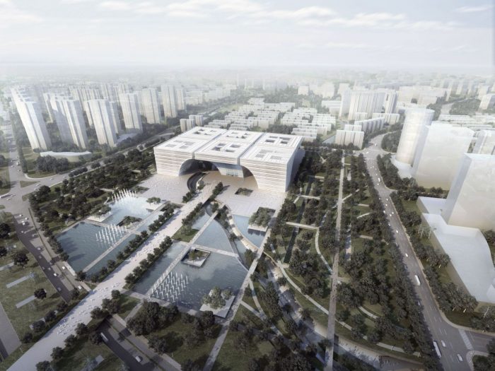 The new building complex includes a number of museums such as an art museum, a science and technology museum and a library, together with service facilities supporting the center for culture in the Xinbei district of the city.The design reflects elements of Changzhou’s southern Chinese culture and the city’s prominent water features.
