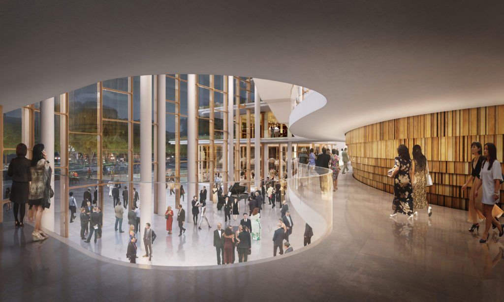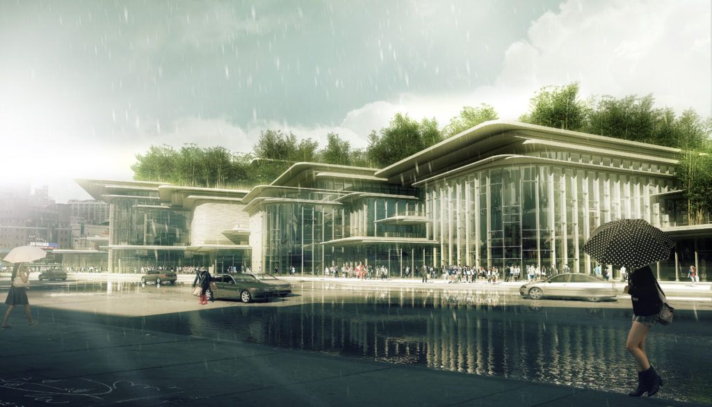 Located at the Wuhou district in Chengdu, China, and designed by Andrew Bromberg at Aedas, the Chengdu City Music Hall complex balances cultural components within a dense urban environment disconnected from its traditional connection to nature. The traditional Chinese landscape paintings or shan shui paintings – ‘shan’ refers to mountain and ‘shui’ to river – are evolved from the surrounding Sichuan landscapes.