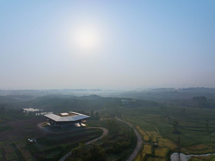 The rooftop, with its partial accessibility, offers panoramic views of the Tianfu Cultural and Creative City’s core. At the same time, the curved roof blends seamlessly with the wetland backdrop, reminiscent of a wild goose’s feather.