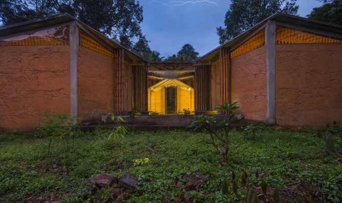 In today’s world, it is a prevalent trend to add the prefix of sustainability to most things. However, there seems to be very little that is done to represent the concept. We, as a community, have devoted ourselves to the cause of using Mud and Waste as the chief components to make structures which are alluring and utilitarian. As a firm practicing sustainable architecture exclusively for a decade, we know about the aspirations of a “modern” client, where his house is a symbol of his status and prominence in society instead of being a statement for the future. When we first met the client, he mentioned to us about his disapproval towards the traditional Kerala style home system. The traditional houses in Kerala are typically sloped roof structures with heavy overhangs. Although the roof prevented rain and the cooling was phenomenal, he was deterred by the atmosphere of darkness which stayed prevalent or was associated with the ambience inside the house. The second altercation was that many of the architectural systems that were in place promoted gender inequality in the olden days since women were restricted to the courtyard. Thus during the early days of the project, the client had made a point that the house should be a symbol of a new light, or a new outlook to our age old systems and beliefs. “Chirath” which denotes a traditional lamp in Malayalam is the name given by Mr. Ramanujan Basha for his house at Pala, Kerala. The client, thus asked for a solution by throwing away the bad and utilising the good. We decided to break the roof, split it open and let the light flow in, all while using waste and mud to build the house. This is the concept of Chirath. What is waste? Waste can be classified as anything that was produced, used and then discarded from its original function. While the work and construction process results in the production of a lot of scrap, we believe in not being deterred by this demon and instead building with it’