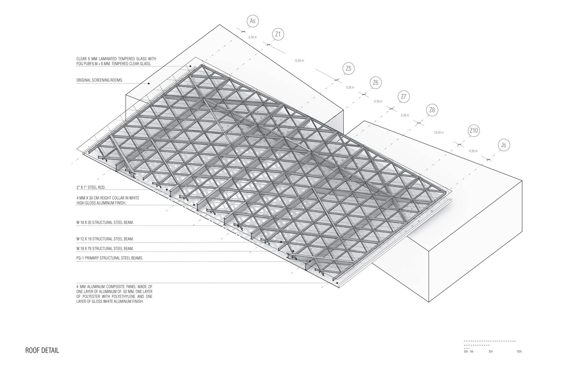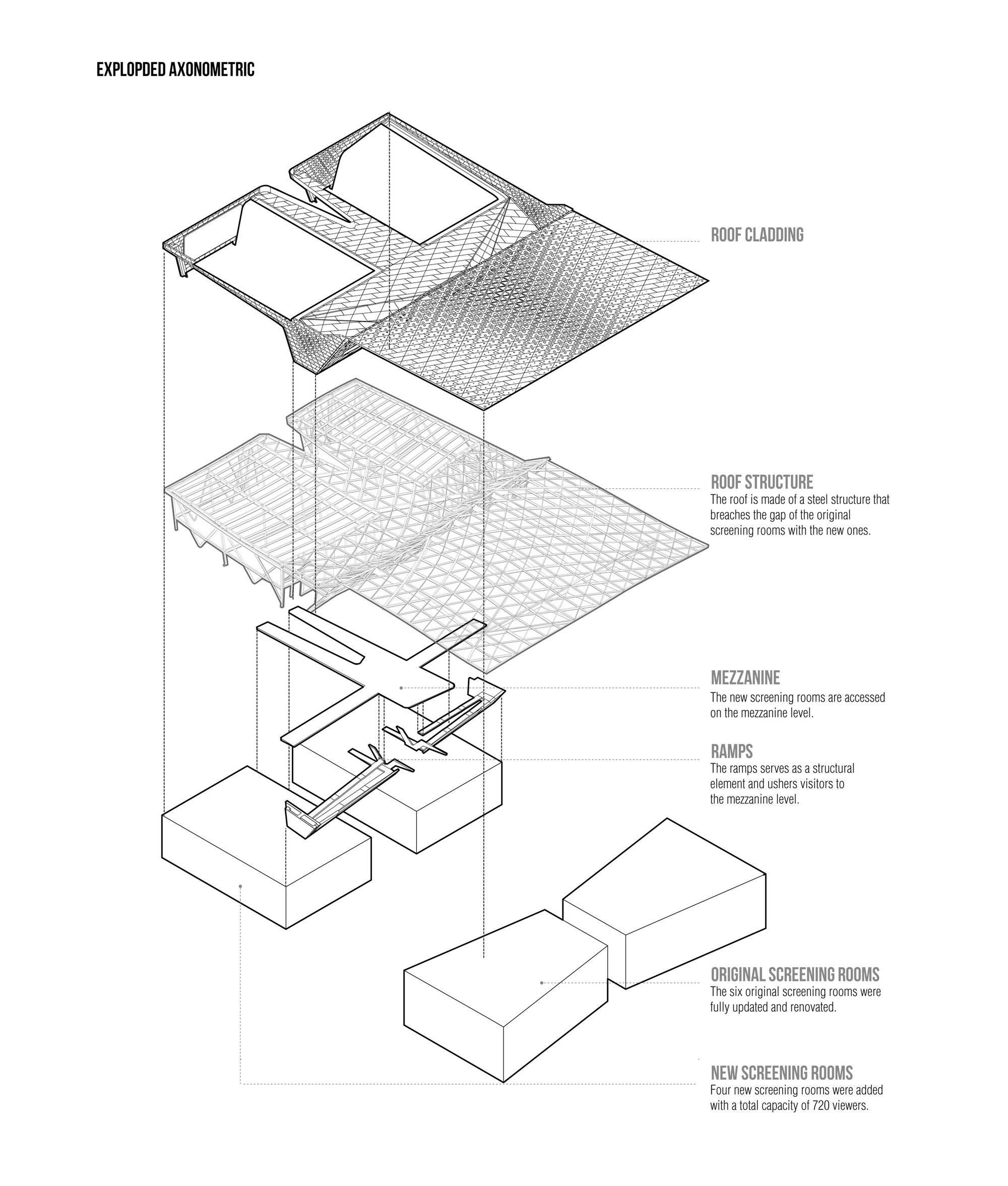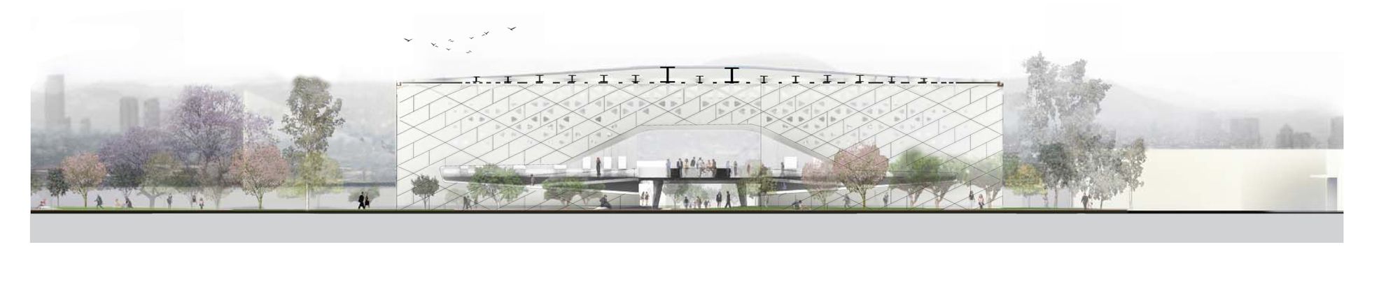 Other than that, we can find that much of the roofing is composed of perforated aluminum plates – added in photoshop postproduction in most of the photographs featured below, as the building is not finished – that clad the roof’s steel structure. This “campus” has thus become a place of intense use not only for those associated with the cineteca, but also with workers and people from the surrounding areas that benefit from the its open and inviting character, as well from it’s public events.