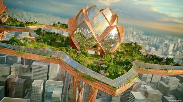 Here, we present a real good example for a city in the sky of the future by Tsvetan Toshkov, a visionary architect who demonstrates the sky is not the limit for his imagination as he goes beyond it, exploring new ideas and features. Recently, Tsvetan unveiled a challenging concept for a futuristic city that looks promising for sustainable tomorrow. The lotus- inspired city, far above any familiar sky-scrapers is still under development, presents an imagery long-beloved sustainable vision with steep perspectives of a frictionless, super-shiny and super-clean city.