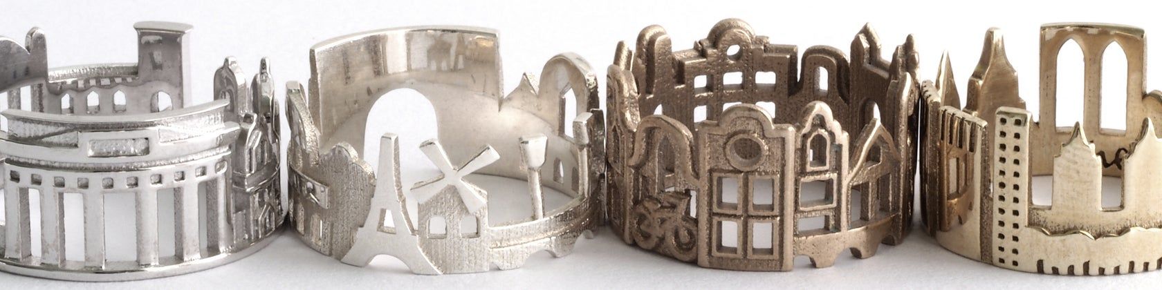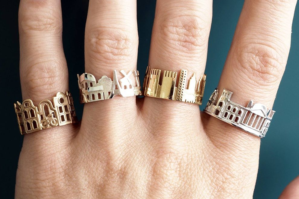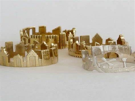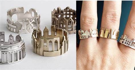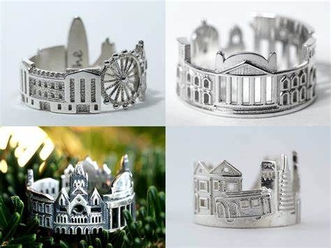 Creative architecture isn’t limited to building designs; another sort of creativity is being introduced by the North Carolina-based goldsmith, Ola Shekhtman. Her new design collection targets the romantic traveler who often falls in love with city skylines, so they could carry its image wherever they go. Ola grew up in Siberia; she had always wanted to explore the world. She moved to New York with her husband after visiting many cities like London and San Francesco. With an education in jewelry making, she enrolled in 3D-modeling classes to help her create her unique designs. Inspired by the city of Paris, she started her first cityscape ring. So far she produced dozens of rings representing skylines of many cities like New York, Amsterdam, Washington DC, Boston, and Edinburgh (Intending to imitate the skyline of Seattle and Chicago in further designs).