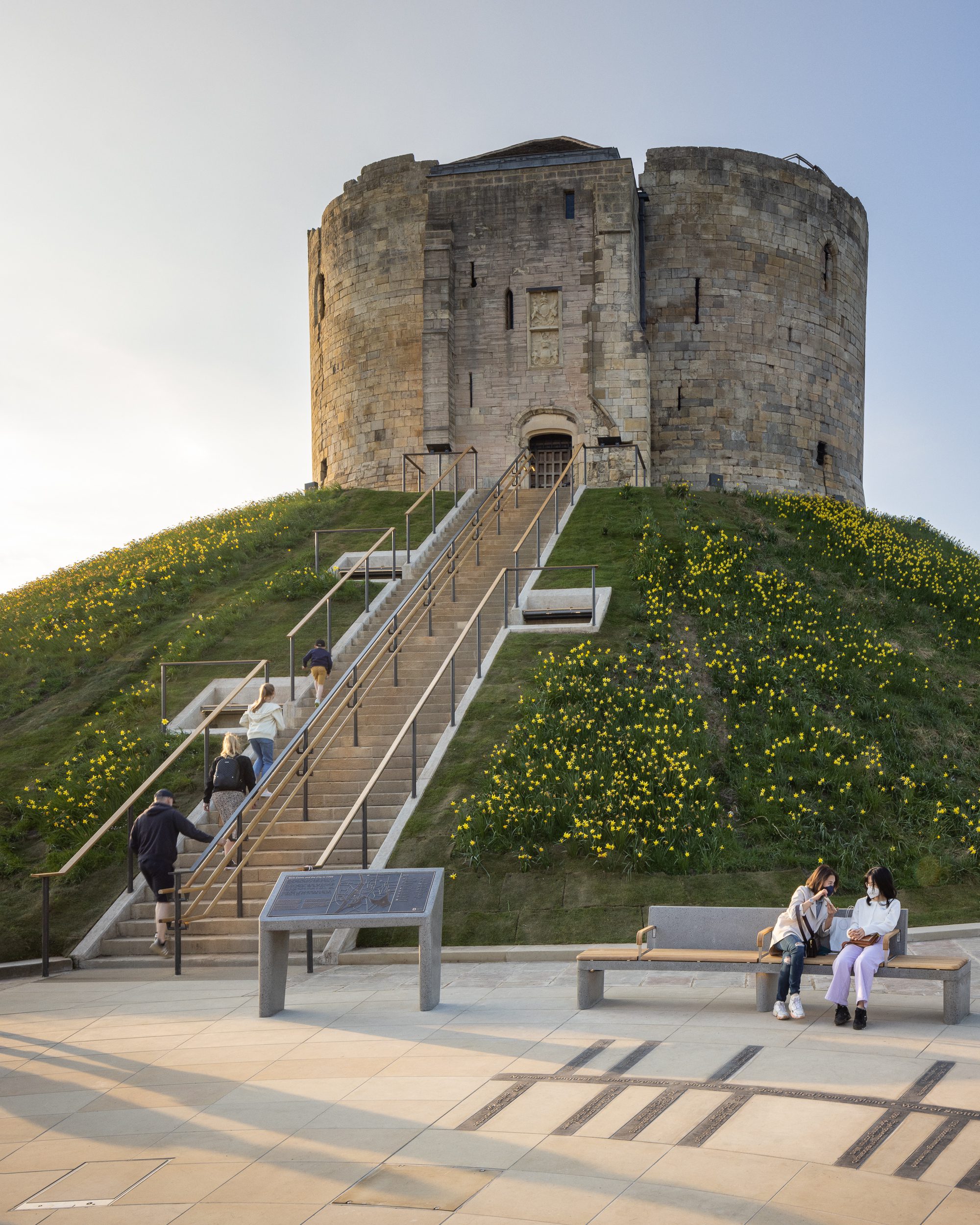 Hugh Broughton Architects and English Heritage’s project to safeguard the future of Clifford’s Tower in York has completed and will open to the public on 2 April 2022. The project, which was designed by Hugh Broughton Architects working with conservation specialists Martin Ashley Architects, includes vital conservation works as well as architectural improvements which enhance the visitor experience.