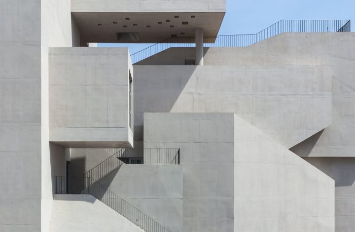 The chapel structured like the bleachers is designed to increase the capacity of the space built on a compact site. Small rooms are positioned behind of the inclined surface of the bleachers and on the top section of it so that the church can make the best use of its space. Especially the outside stairs connecting the ground and the rooftop works as an important element defining the exterior of the church, and the vivid movement of its users makes the church’s architectural statement more dynamic.