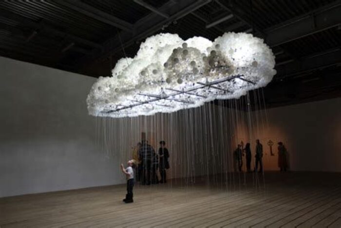 Caitlind Brown is an artist from Calgary, Alberta, who created this large-scale light installation named “Cloud” to be presented at the annual multi-city late-night arts festival (Nuit Blanche) in Calgary this year. The installation invites its visitors to interact by pulling the cords and turning the lights on and off !! This electric Cloud is made of steel, metal pull strings, and 6,000 light bulbs, that turn waste into art (only one in every six light bulbs actually needs to glow). The idea being that instead of wasting bulbs by throwing them away they would be put to a better, and more creative use, by turning trash in to treasure, and waste into art.