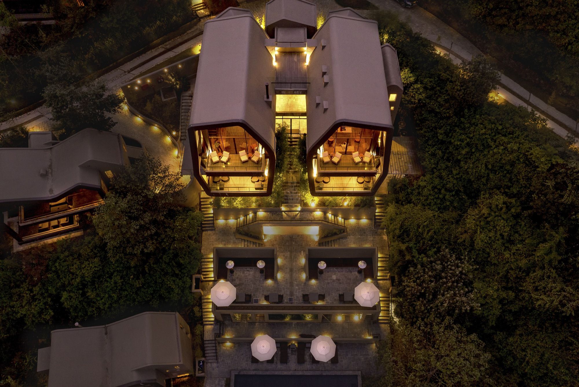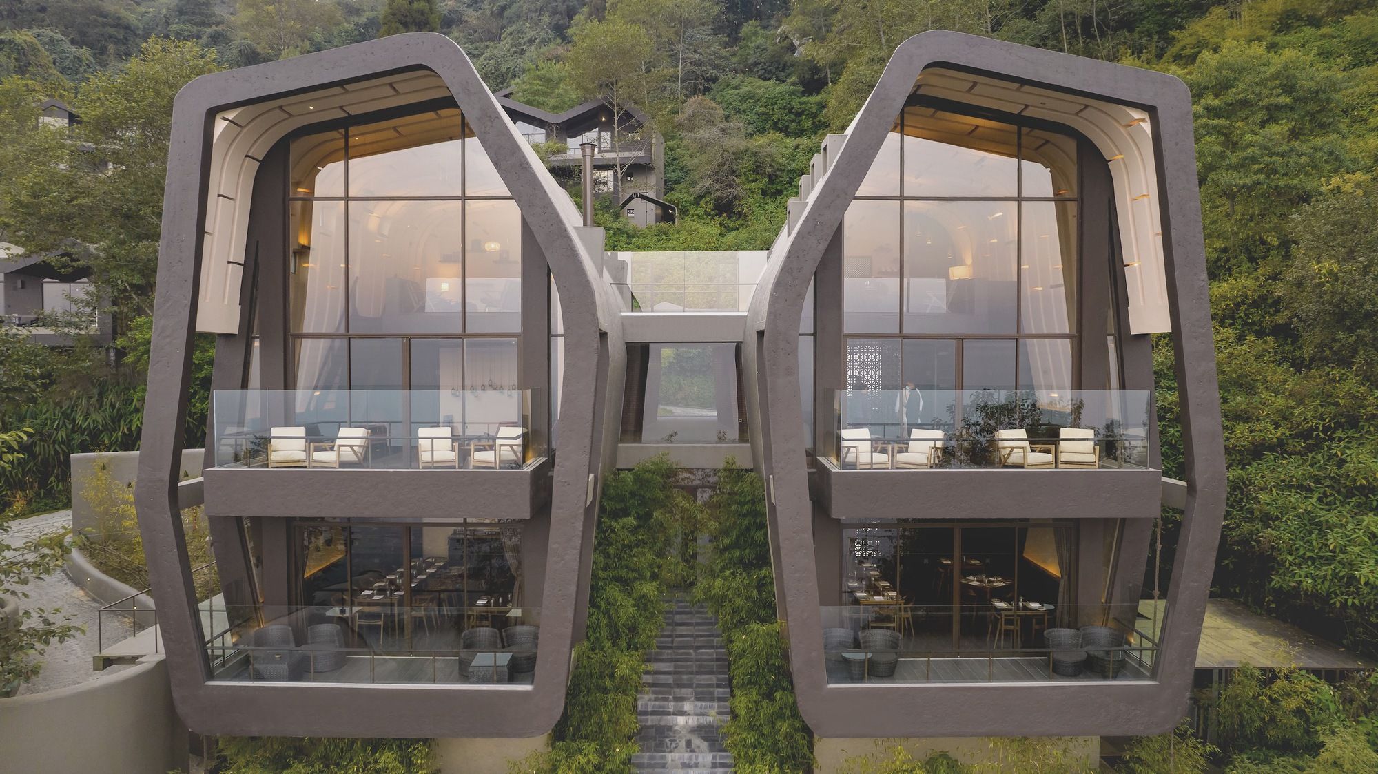 Inspired by the architectural wisdom of local village houses nestled on steep terrains, the design of Cloud Catcher building prioritizes a minimal footprint. The interior spaces are ingeniously stacked and organized vertically within two distinctive ‘rock-like volumes. Connecting these volumes is a central circulation spine aligned with the mountain range, facilitating the intertwining of nature with the structures.