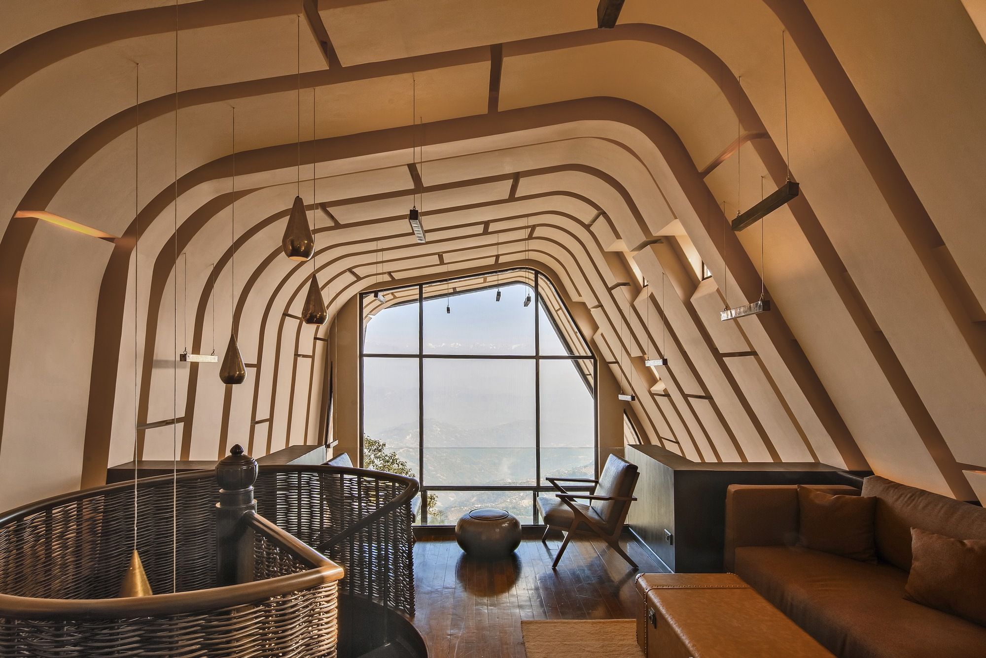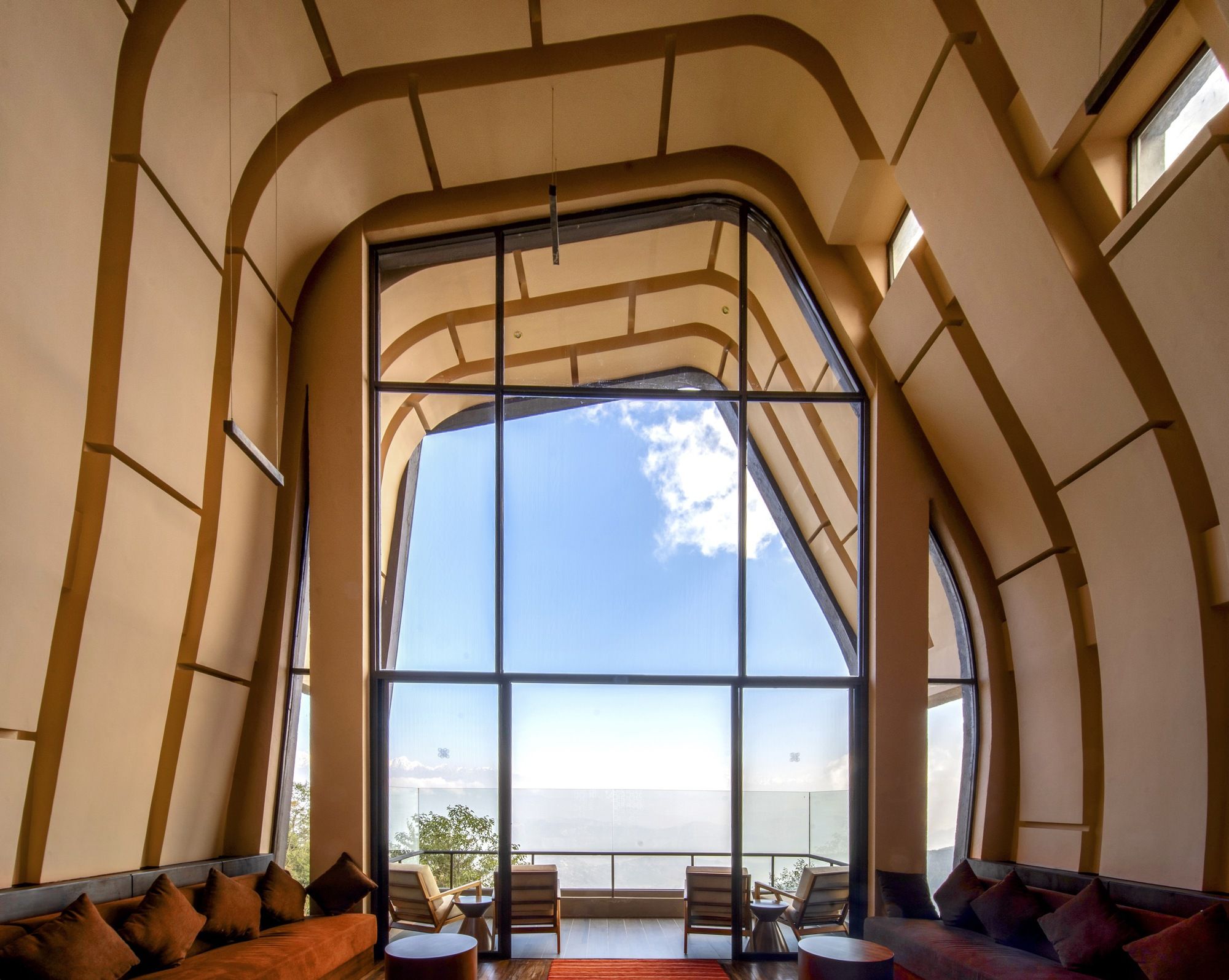Overview about Cloud Catcher – The “Meet and Greet” building at Kavya Resort has been artfully designed to observe the captivating spectacle of passing clouds. Situated atop the highest point in Nagarkot, Nepal, the location encounters a dynamic interplay between crystal-clear visibility moments and sudden obscurity veils. These two rock-shaped structures are thoughtfully positioned to frame panoramic vistas of the Himalayas and the valley below, yet their deliberate separation forms a pathway for clouds. At times, these clouds carry with them mist and moisture, enveloping the interior of the building, creating an enchanting and magical experience for visitors.