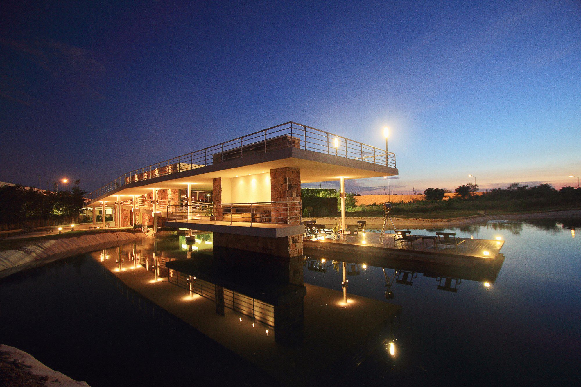 Club House Punta Lago is a 7Ha housing development with a water canal that runs adjacent to all the residential plots. The developers provided for the Club House a plot both with access to the canal and visibility from the main entrance.