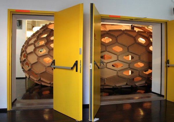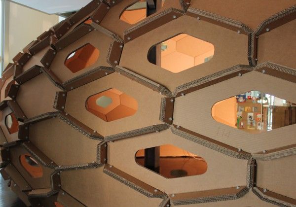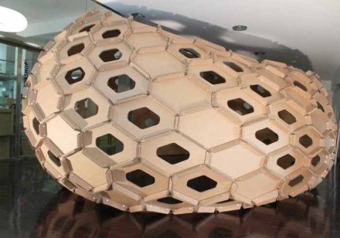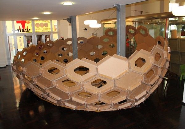 Employing Rhino, Grashopper and Kangaroo students were able to design and build to an optimum level this cardboard hexagonal cocoon.