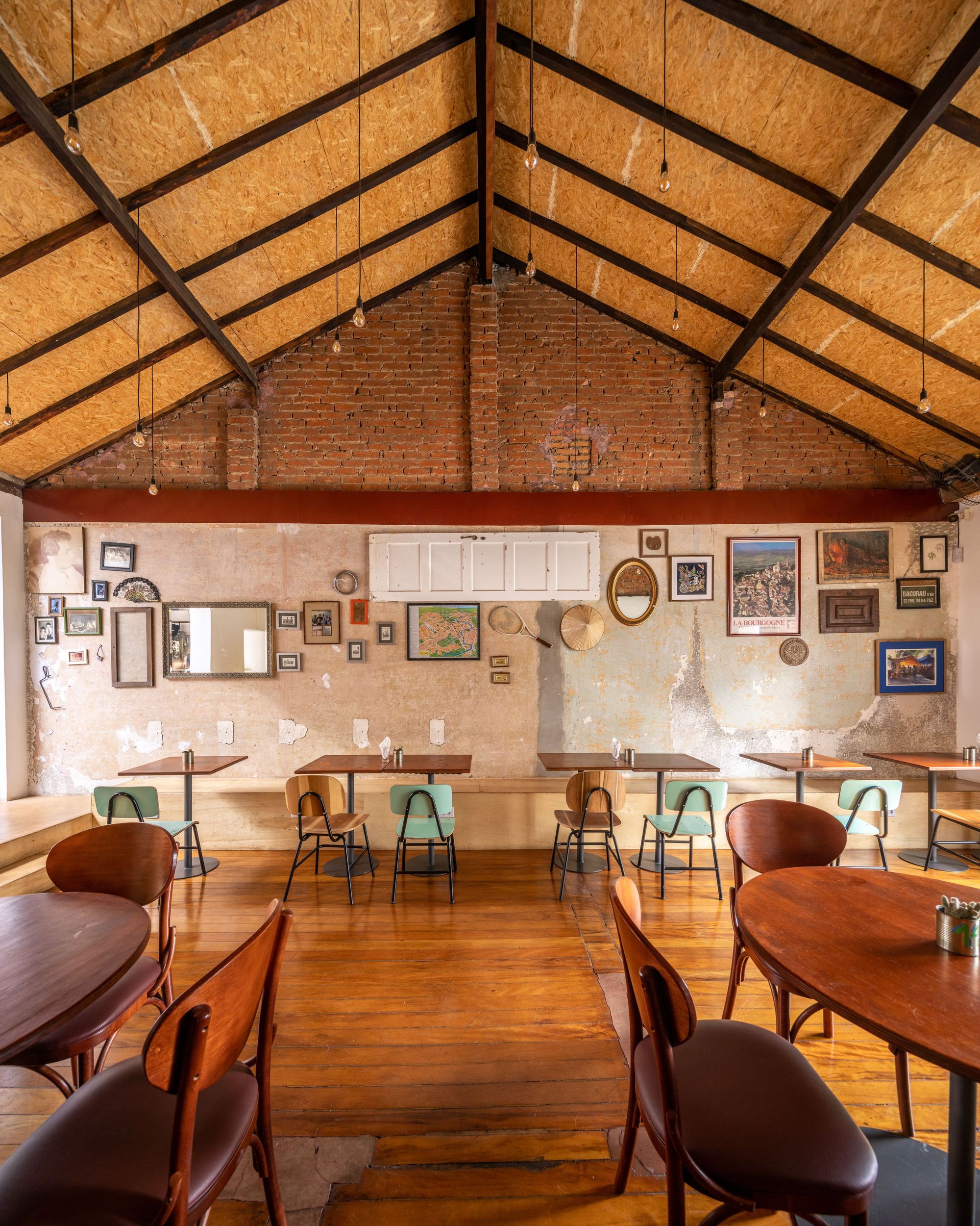 The question in this reform is how to completely transform the existing space, what is possible to take advantage of it, what is necessary to adjust, occupy a house of past decades with a completely different program is a challenge that the city brings us and on our part, as architects, it is up to return the city the busy project, intrinsic to the city, taking advantage of it at different levels, so that it becomes the party of the project, it is necessary that the space is an extension of the street, which is why the bar was put right at the entrance, so that you can “support the unpredictability of life”, in short, the bar accompanies you from breakfast in the morning to the night draft beer. Like every good old house, this does not cease to have a patio, a fundamental part of the project, and in a way, a structuring axis; the ground floor accommodates tables, counter, box, living space, next to the central courtyard, two bathrooms, and the back, but without losing sight of the space and the street, illuminated by the patio, the kitchen.