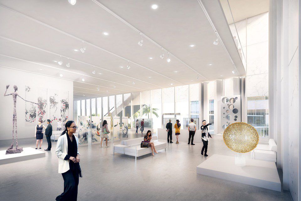 The cultural center project consists of three independent entities: a museum, an art gallery and an exhibition hall. On the ground floor, the City Lobby serves the shops and metro, and links the three entities. Higher up on the Sky Lobby level, a “floating” public area, cultural programs are found alongside plant-filled spaces.