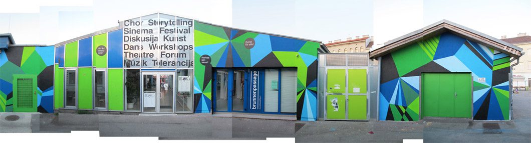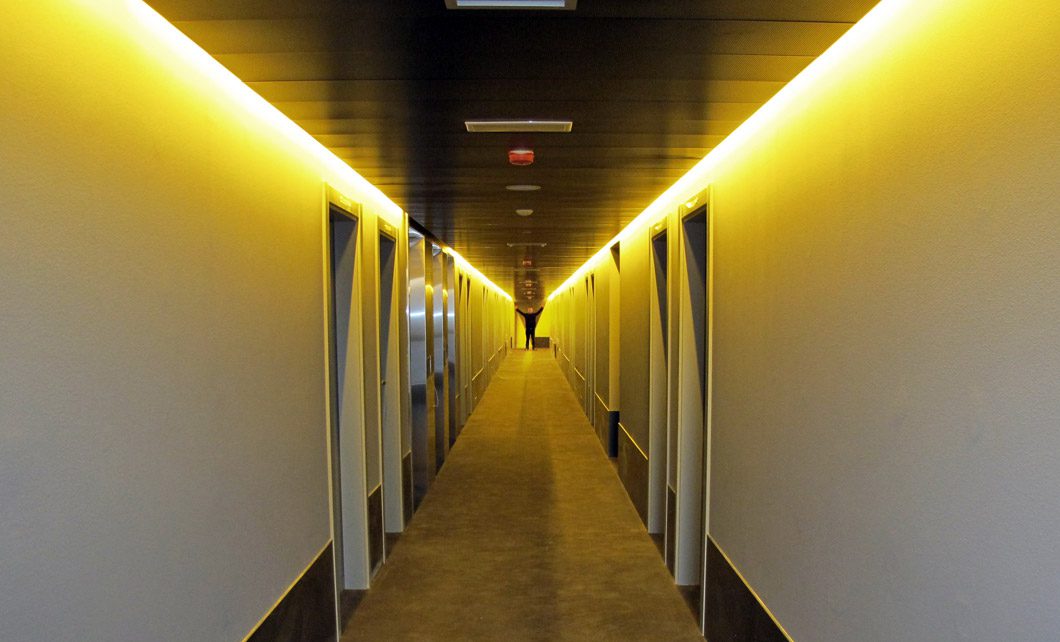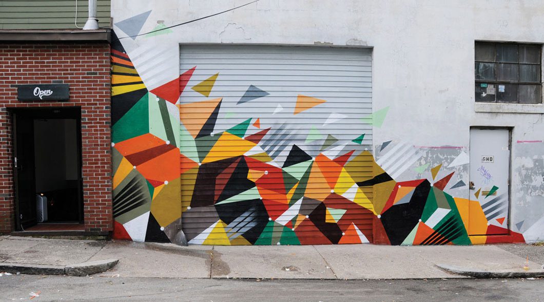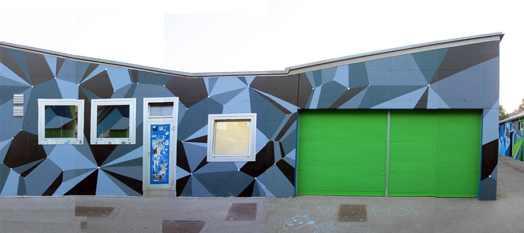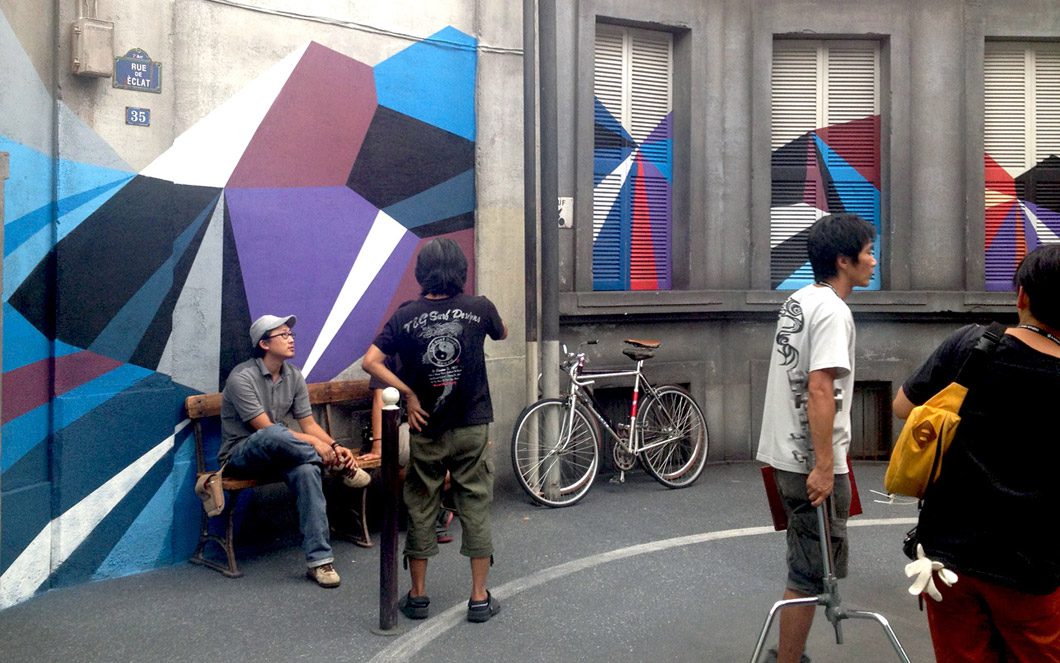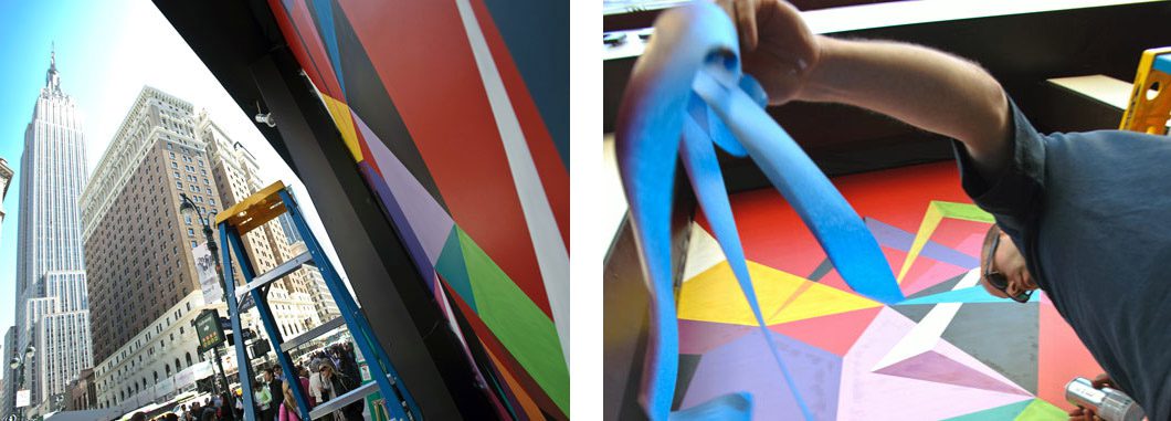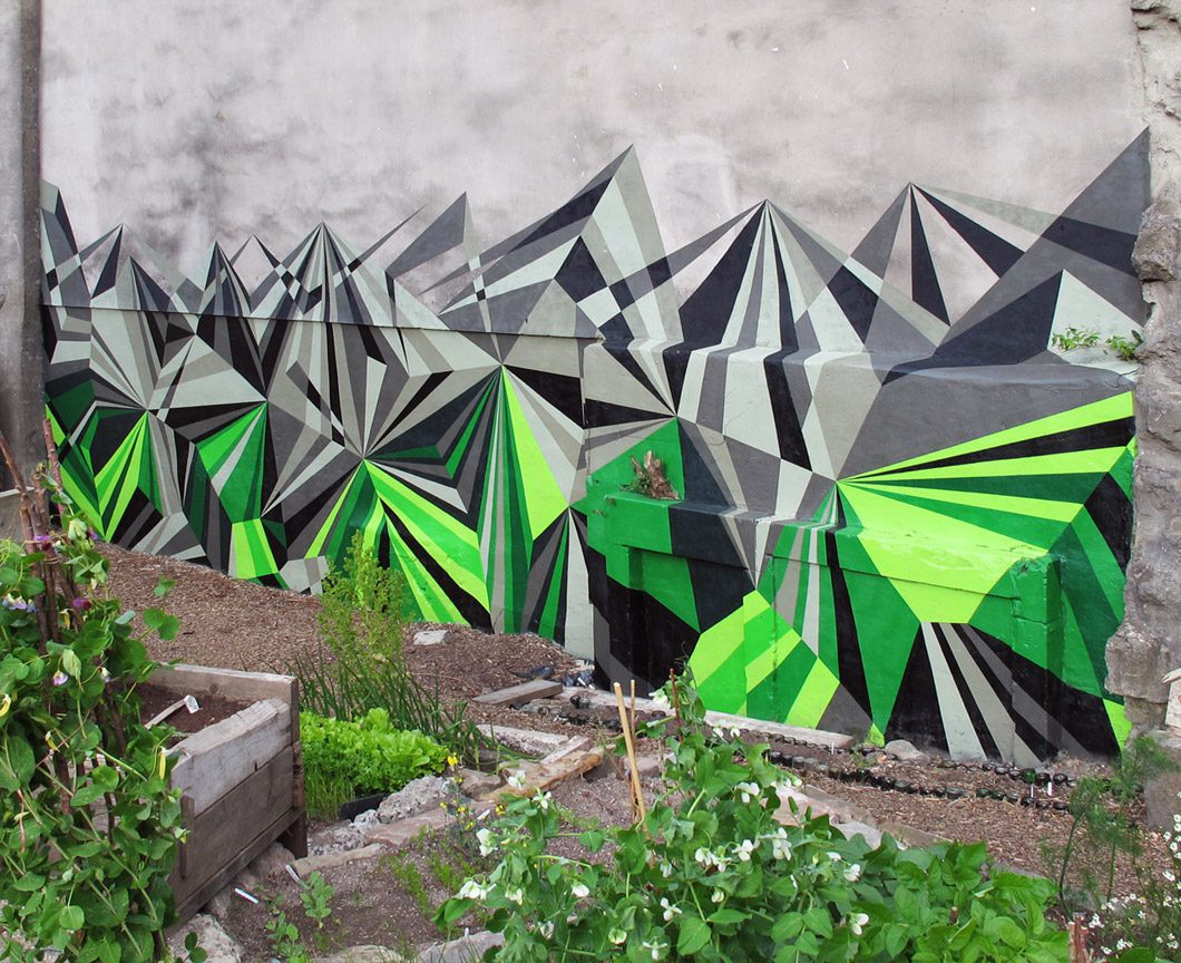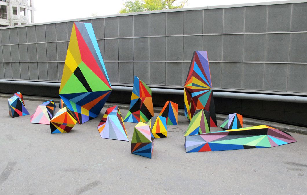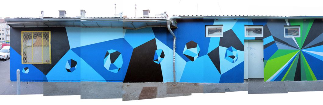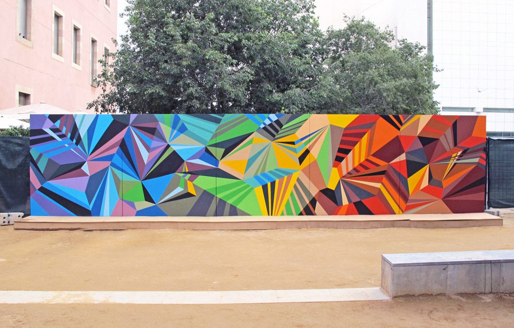 Colorful Geometry Murals, I’ve recently come across Matt W. Moore’s work, in particular the work he did for the Vincci Bit Hotel, where he painted the hotel’s fourth floor hallways. I am usually opposed to painting a wall because of the process of applying an artificial finish to a material. Despite that, I think Moore did it successfully because it is more of a mural, and the wall becomes a canvas to a piece of art. I can’t help but appreciate adorning otherwise nondescript walls and surfaces with vibrant and dynamic paintings.