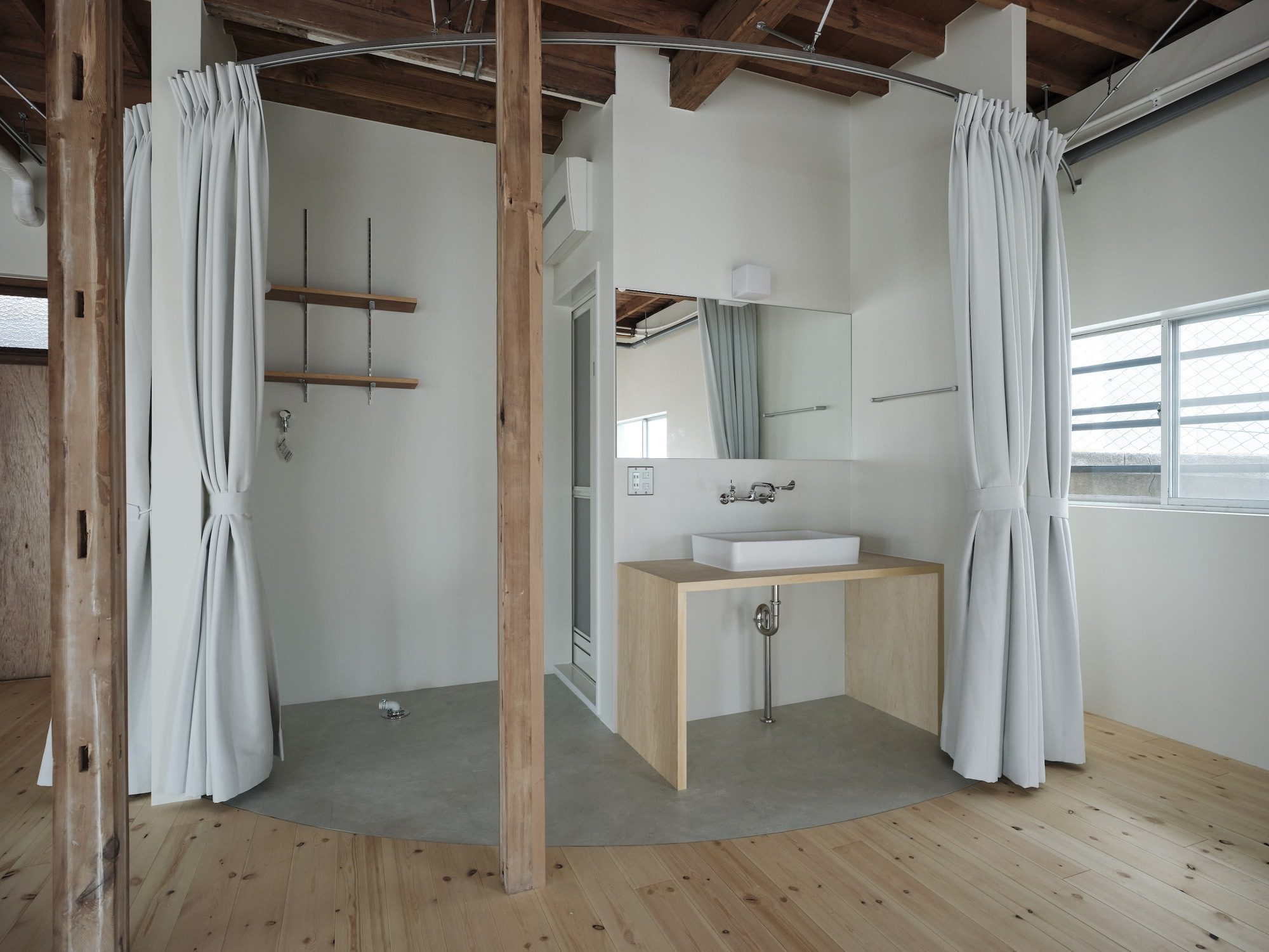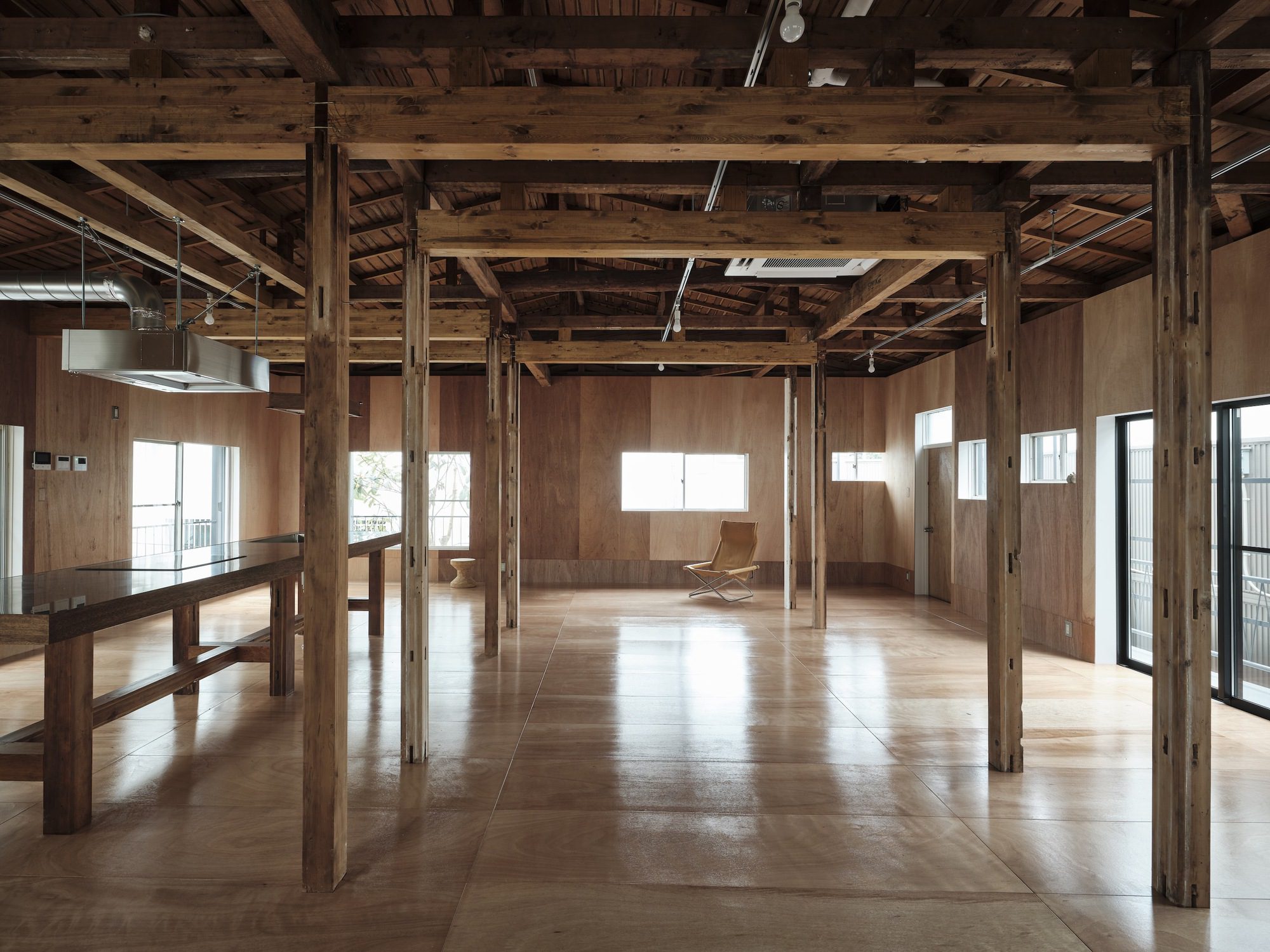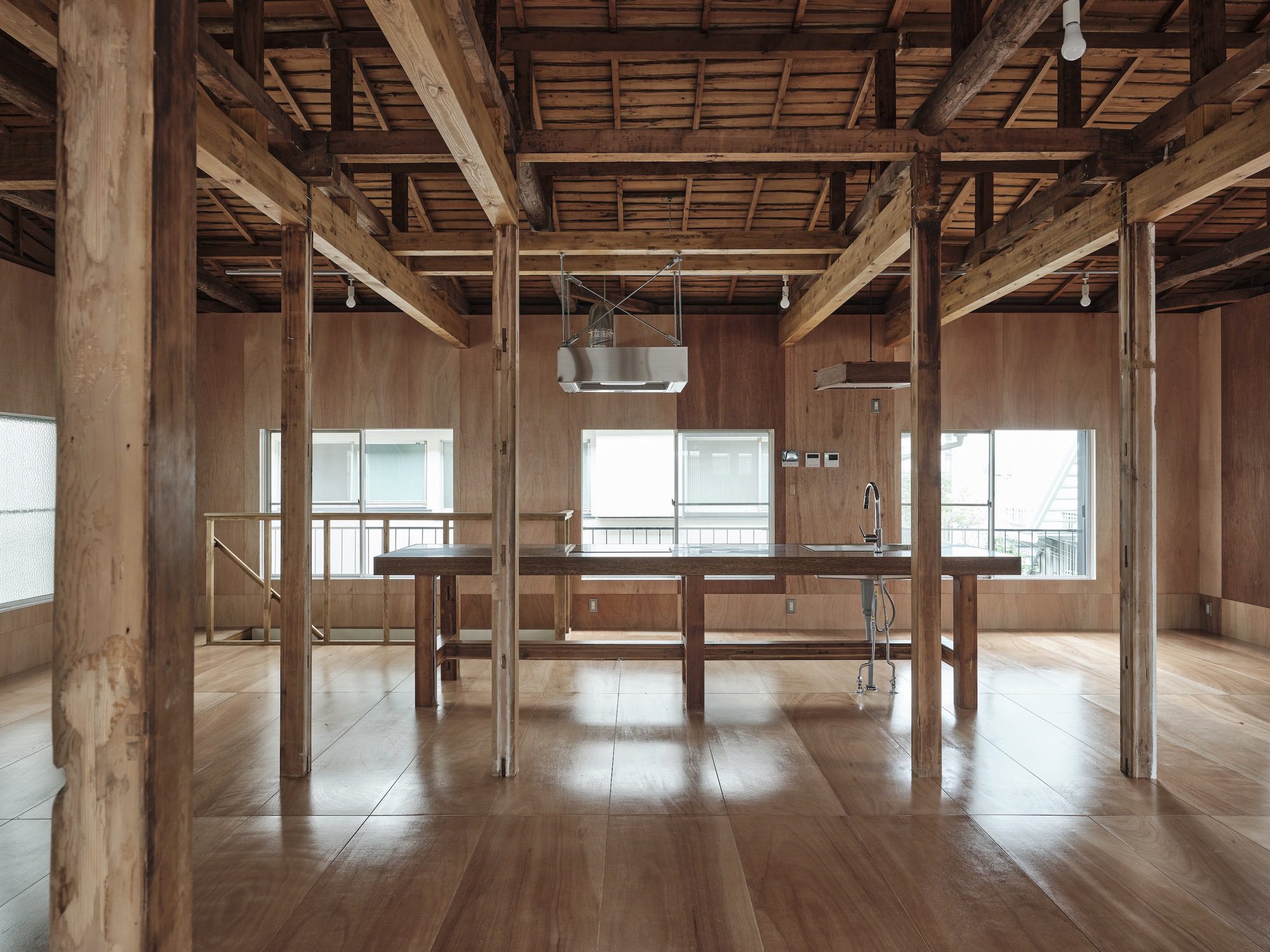 Commercial Space in Minato, Transformation of a 1960s Wooden Apartment Building in Tokyo’s Minato Ward into a Commercial Rental Property. In the heart of Tokyo, Minato Ward, a traditional wooden apartment building, originally comprising six separate units, has been reimagined into a single cohesive commercial space. This architectural transformation involved a complete internal renovation, where all interior walls were demolished to create an open and unified living environment.