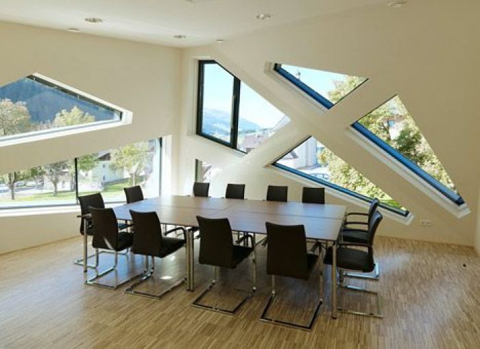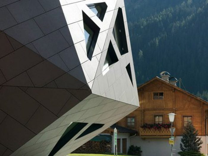 Located in Abfaltersbach, Tyrol, Austria, the Community Center designed by Machné Architekten represents a focal point for the social activities of the town. The center is divided into three parts; auditorium, music rehearsal room, and town Hall to to give each part its optimal form, at the same time they are connected to the entry to the foyer . The three huge inhabited sculptures dominate the site, while their form of carved stones casts interesting shadows on the facades and the ground. More about the project description comes from the architects after the jump.