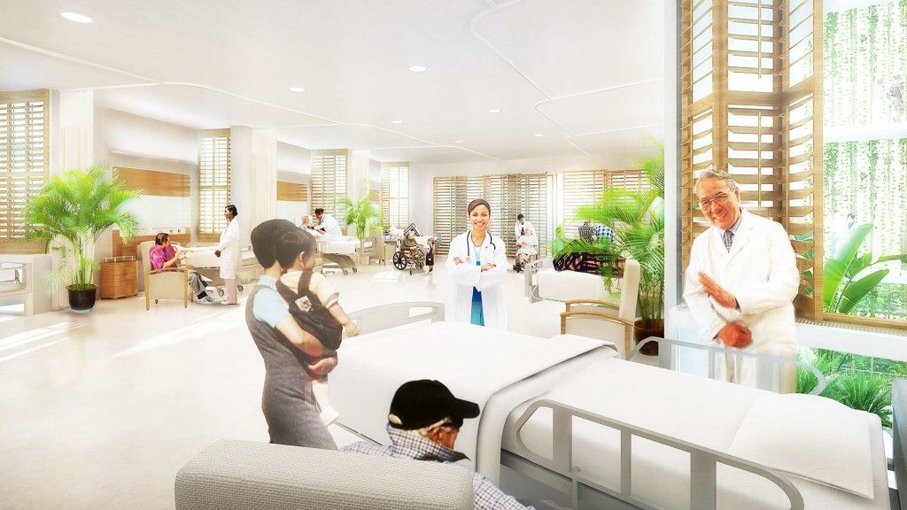 To support this goal, the concept is a hospital as a rain forest—the hospital as a living system built around care, and harnessing the sun, rain, soil and air to sustain life.