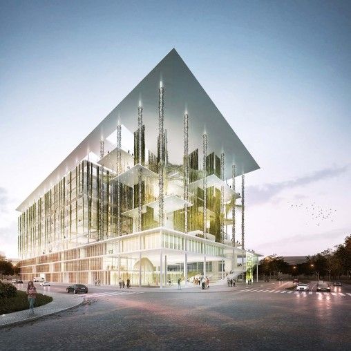 The building is comprised of five major components: a four-story podium for outpatient and rehabilitation services, a public and rehabilitative garden layer, a seven-story inpatient ward tower, a canopy roof layer, and a structural system that delivers vertical landscaping. An open-air, two-story public plaza is the front porch of the facility and includes a water feature and bird aviary to fill the space with an active, living environment.