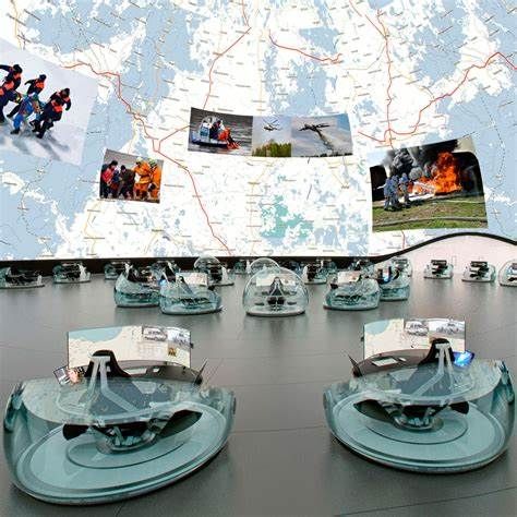 This project eradicates old problems that had plagued the “large situational and dispatch centers, working with a great volume of information (including map information) in emergency situations”. Previously, the major challenges of these centers had been the heavily distorted appearance of maps on video walls, rigid work-spaces, and extremely noisy workspaces. The designers – Architects A.Goryanov, M.Krymov, I.Cociuc- eliminated these problems by replacing the video walls with video cupola t give employees better views of the maps – So, no more distorted views; Providing soundproof, mobile, flexible, comfortable, and independent workspaces – “In our project, each workplace is an individual working module. It is equipped with all necessary, including the panoramic monitor and communications tools. Each module has a soundproofing transparent cap that can be completely closed or open. Also, it is equipped with ventilation and air condition systems. Each workplace can move about a hall according to any set scenario. In all points provided by the scenario, the module automatically connects to power and low-current systems by a connector on the floor. Modules can communicate with each other on a video conferencing when the isolating cap is closed. Also, they can communicate with other control centers. The chair of the module has a maximum number of settings including a horizontal position to have an opportunity to see the cupola entirely. All this allows creating a large number of work scenarios of the dispatch center, proceeding from each concrete situation. The working module itself can be used in any room and not only together with video cupola” Reports Arch Group.