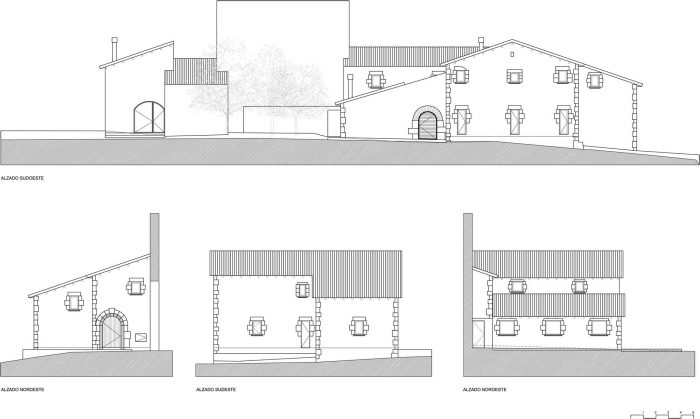 The hotel designed by the firm of Camprubí i Santacana Arquitectes is an innovative project comprising a central house containing the services and communal areas, plus ten rooms built independently.