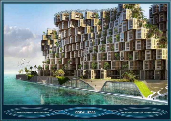 Coral Reef, inspired by the organic form of coral, Vincent Callebaut Architecture has designed a proposal for the crisis stricken nation of Haiti in the form a plug-in matrix for 1,000 families built upon seismic piers off the coast of the mainland. The project, entitled Coral Reef, would be made of modular units stacked on top of each other to be inhabited slowly over time. In addition to the standard unit, each family would have a plot of land to grow their own food, and their passive home would minimize energy usage. More details from the architect come after the jump.