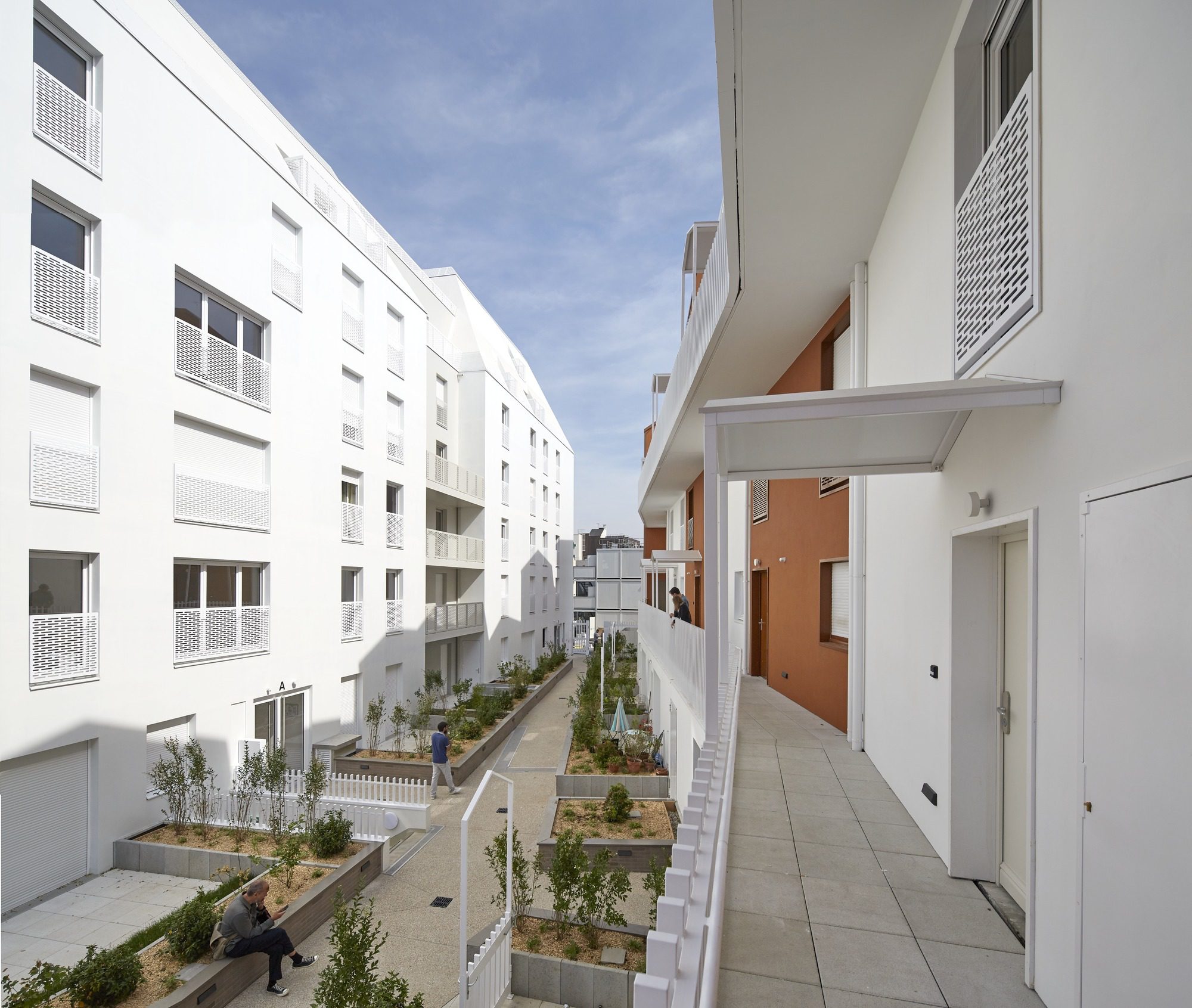 Cornerstone 71 Private Dwellings, This operation is the figurehead the neighborhood renewal on the corner of the Karman street and beside the newly created public square. The project is made of two different architectural entities. The first one is a sculpted volume, white, porous, trimmed, divided into two elements arranged on a common and uniting base.