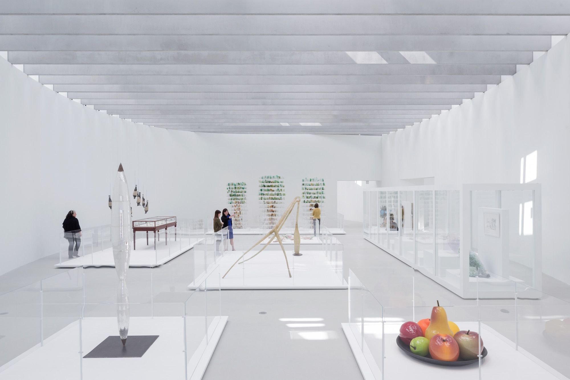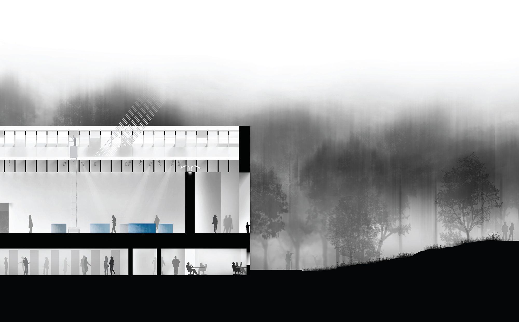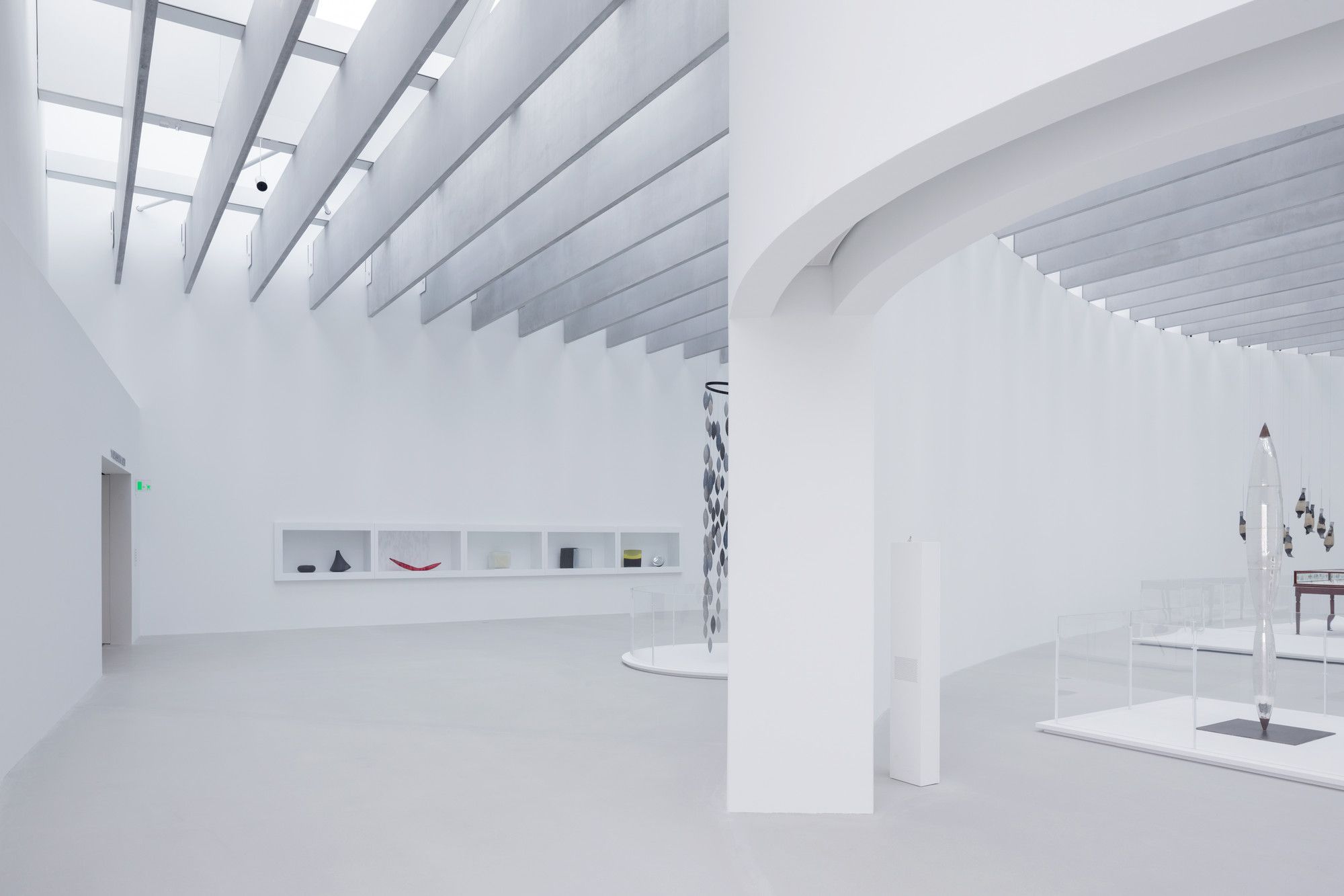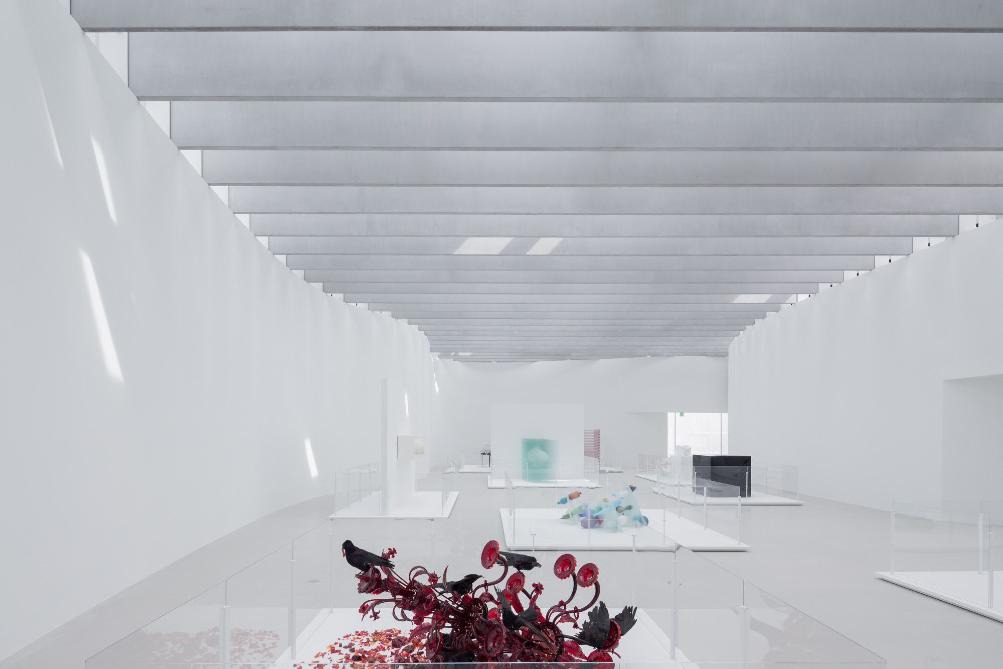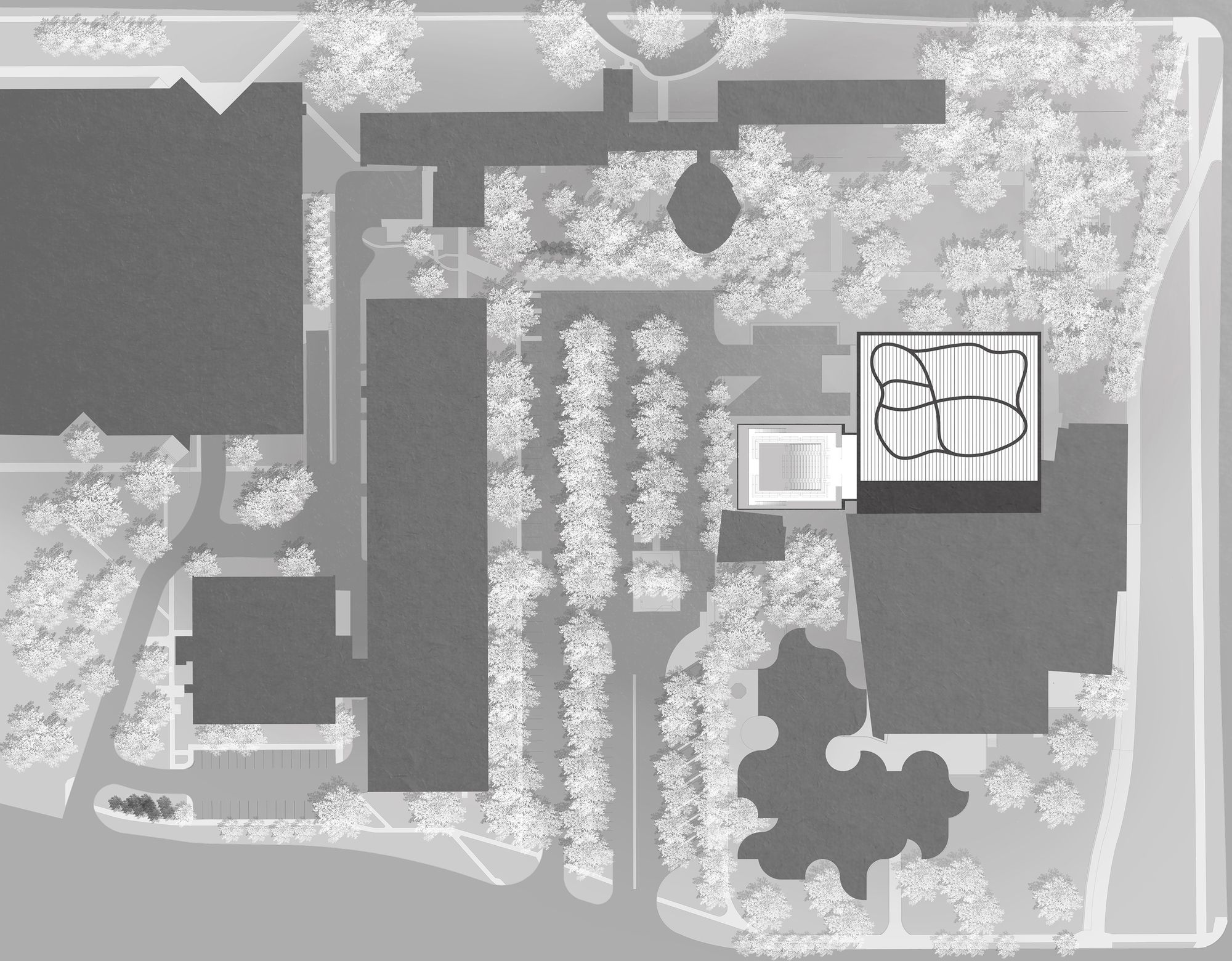 The new gallery building—which will be the largest space anywhere dedicated to the presentation of contemporary art in glass—features skylighting with a sophisticated light-filtering system that is integrated with the structural roof beams. Inside, the works of art will be displayed largely independent of the curvilinear plaster walls, encouraging circulation and allowing contemplation of larger works in glass. The gallery experience is punctuated by a 150 foot long window that provides views to the campus green and reorients the visitor to the larger landscape.