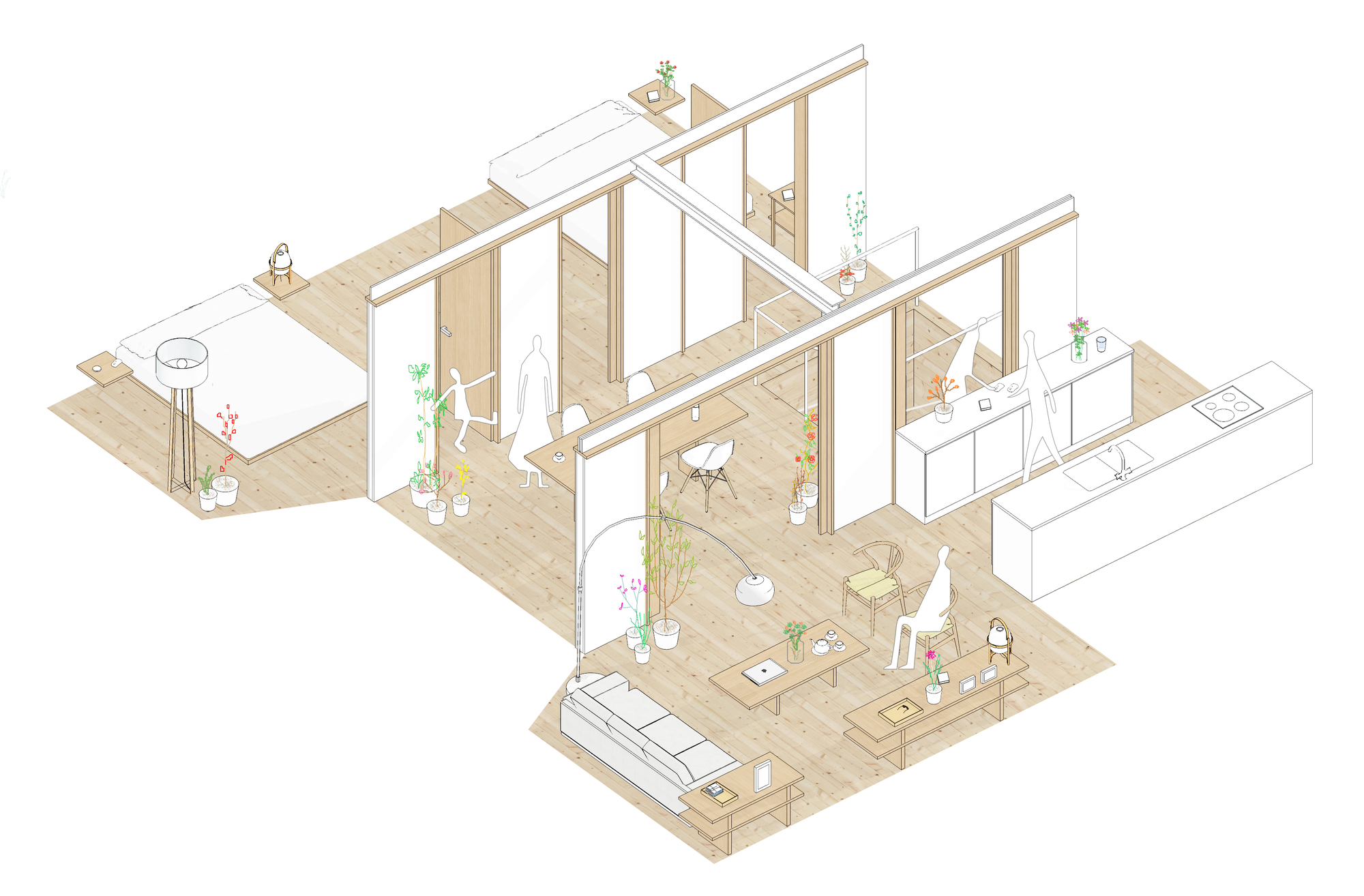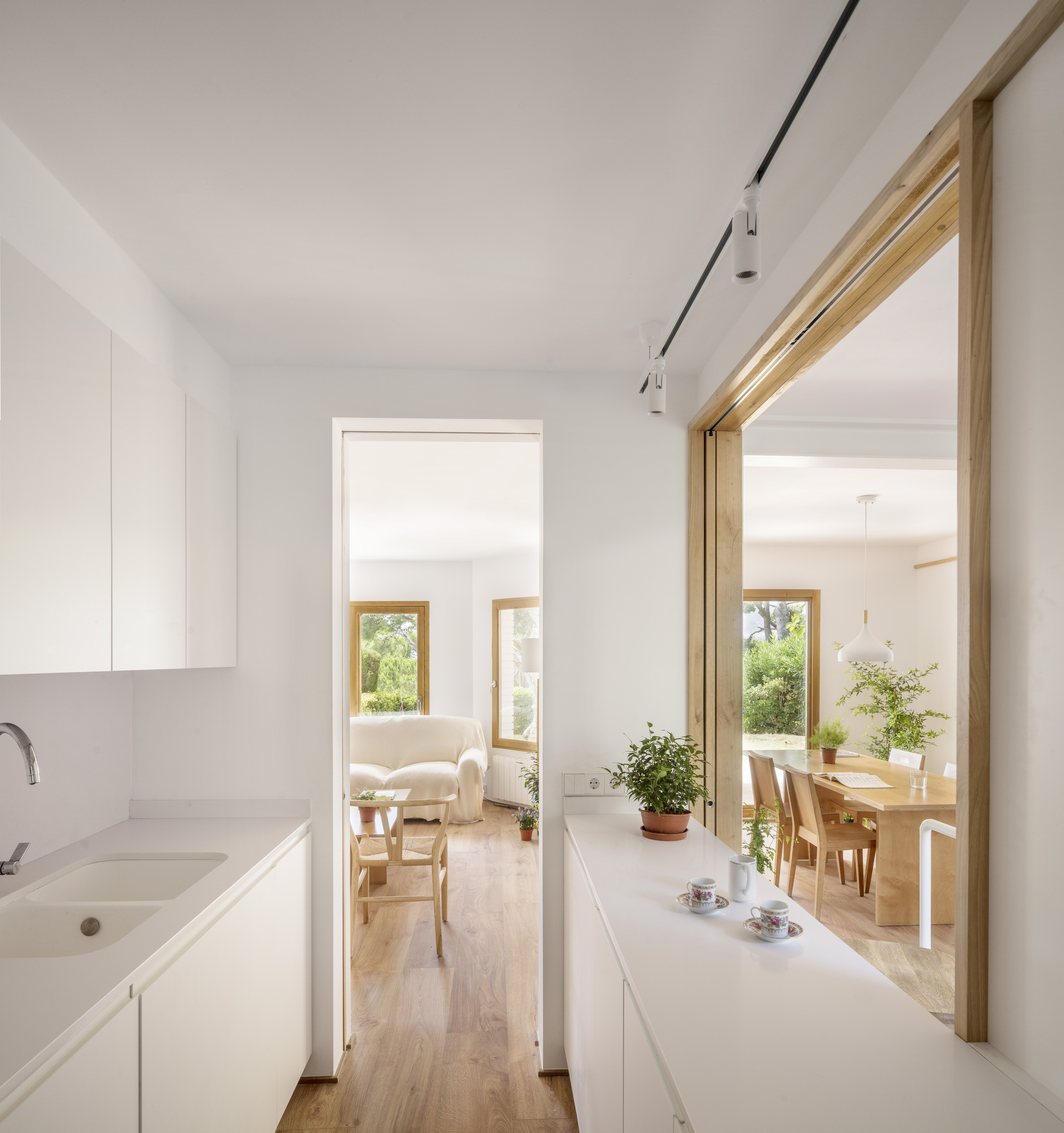 Costa Brava House, This garden apartment is located in a Begur urbanization at the Costa Brava coast. The project presents the opportunity to reinterpret the Japanese traditional house, giving rise to a new fluid and flexible spa-tial relationship between its different habited units. The principal idea of the project is to create a new domestic architecture where nature, wood and light merge into a unique atmosphere.