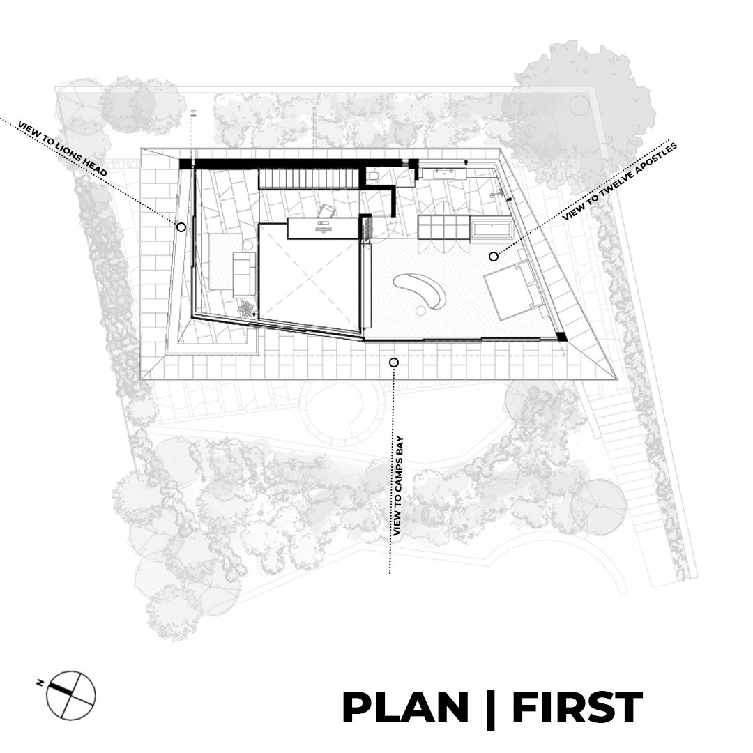 The topography of the area is taken into account with focused and considered views ranging from the west facing façade which opens up to the Atlantic Ocean, to the first floor terrace that gazes upon the iconic Lions Head and the framed views through the clerestory windows of the 12 Apostle mountain range.