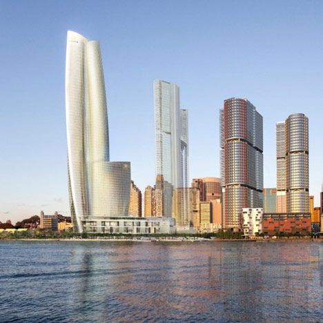 Immediately setting the new proposal apart from the surrounding landscape is the tripartite tower’s entasis. Beginning as a slender base, the forms swell outwards near their halfway points before once again tightening inwards at their pinnacle. ‘Sydney is one of the most beautiful cities in the world and it is a great privilege to design such a significant building on the waterfront,’ says Wilkinson Eyre Architects’ founding director, Chris Wilkinson.