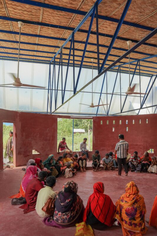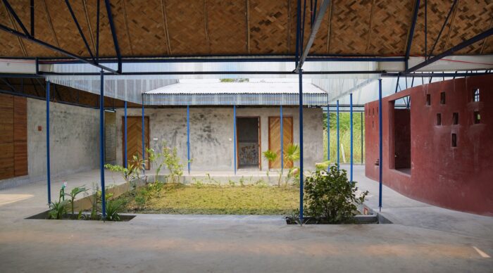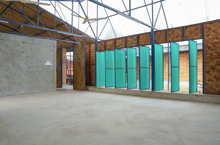 The budget for the project was tight, so we had to be creative with our materials. We used locally available, cost-effective resources to build the space. For the structure, we used simple metal pipes and trusses, while the partitions were made from locally-sourced Makla Bamboo and wood. The bamboo, carefully crafted by local artisan Md. Rofiq and his team add warmth and texture to the building. The high ceilings keep the spaces cool even in the humid summer months, and the roof was designed with heat-resistant materials like bamboo chatai and insulation sheets to keep the building comfortable.