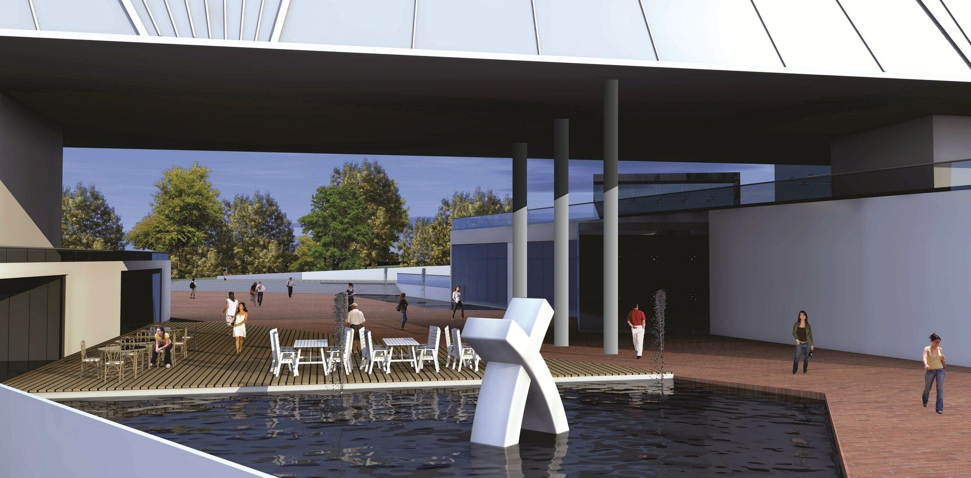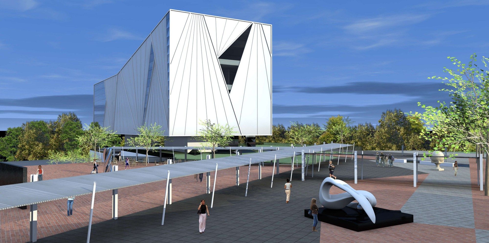 Besides the formal and conceptual issues, were taken into account several bio-climatic concepts that enable proper operation of the building without disregarding the poetic dimension of spaces… Terraces, horizontal and vertical gardens, ventilated facades, and the constant presence of water at public spaces help to reduce direct sunlight and heating.Thus, we have the architecture decisively contributing to the institution’s marketing.