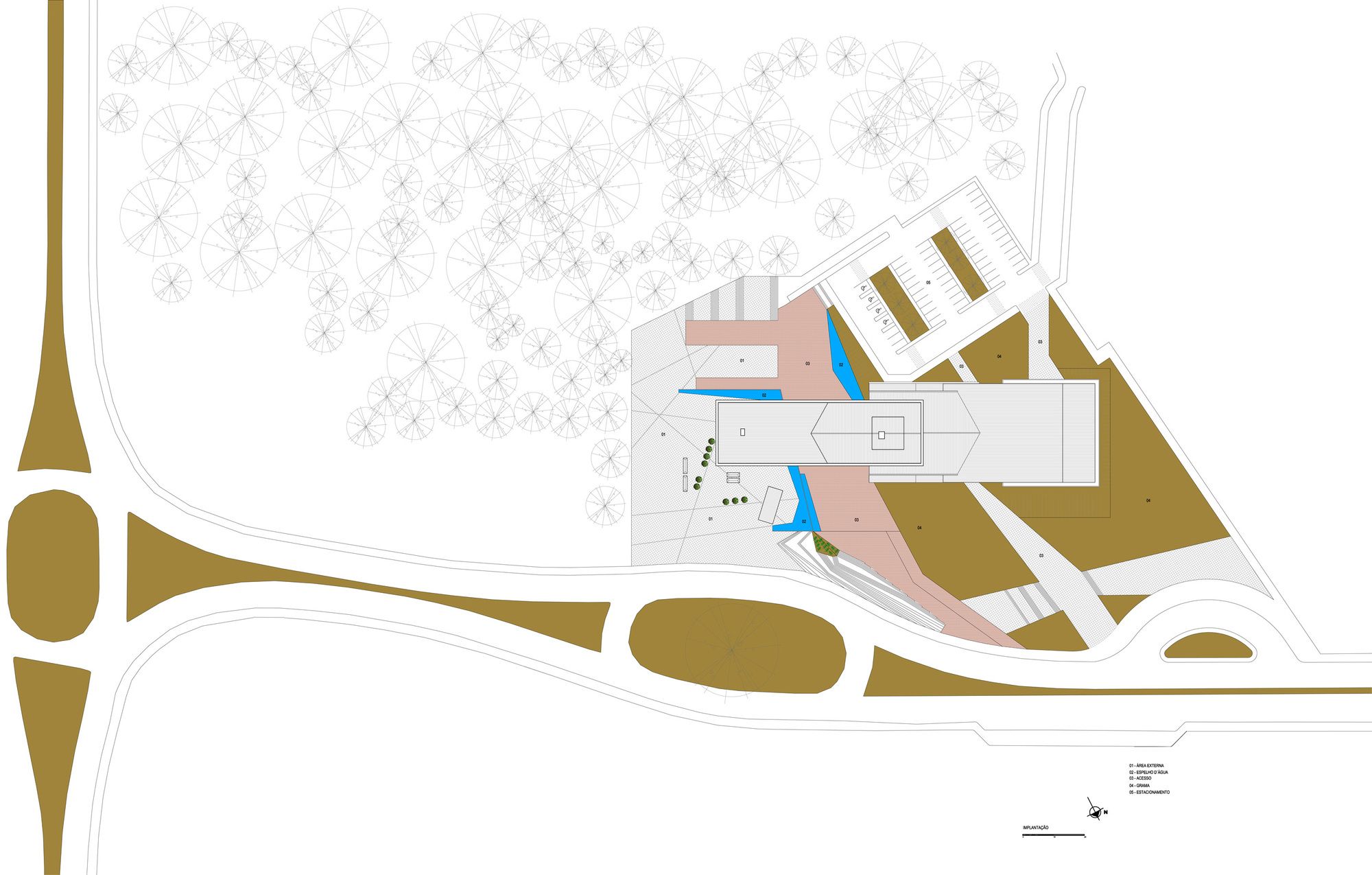 Our proposal for this new facility is based in an intersection of two conceptual axes. They represent the passage of time and the Institution community. These axes intersect themselves in a space of contemplation and movement. A square that concentrates the main buildings of the institution, elements of symbolic value within the academic life.