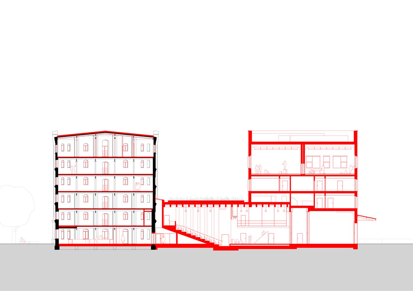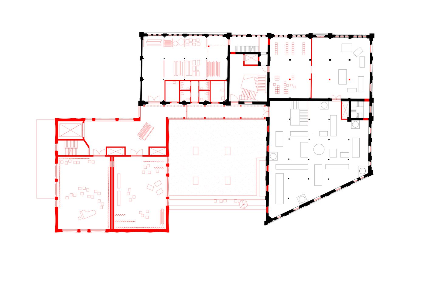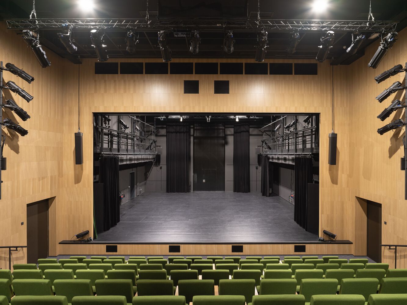 Nestled between the former town fortifications and a branch of the River Elde, the Kulturmühle Parchim presents itself as a civic meeting hub. At the heart of the complex is the theatre, which has found its place in the new annex. With its centrally located stage and theatre workshops, rehearsal spaces, and dressing rooms on the upper floors, it offers ideal conditions for performances and rehearsals. The industrial character and spatial qualities of the heritage-listed six-story mill complex from 1897 have been preserved and can still be experienced by visitors after the remodeling. The historic brick walls, wooden beam ceilings, and steel structure have been exposed and the materiality of the new fixtures has been intentionally left bare and rustic.