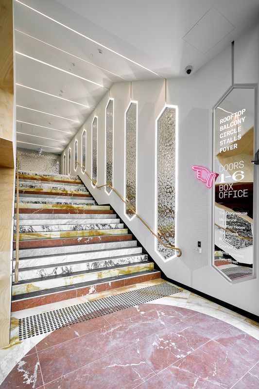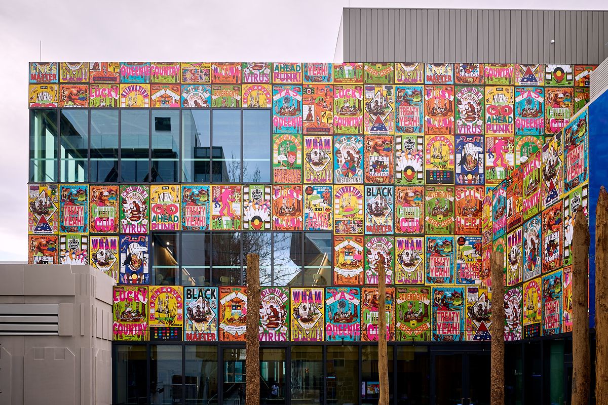 The striking Little Malop Street façade features a calliope, a sculptural form reminiscent of early twentieth-century traveling circuses. The calliope’s inclusion is rooted in the thematic exploration of performance history, which the Geelong Arts Centre aims to celebrate. Internally, the building offers distinct aesthetics for each space, with elements such as a vibrantly colored stone-lined stairway and a captivating tunnel connecting to the adjacent Ryrie Street building.
