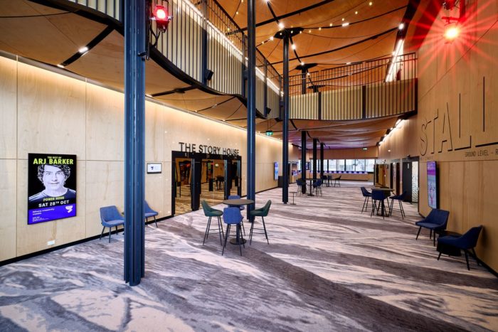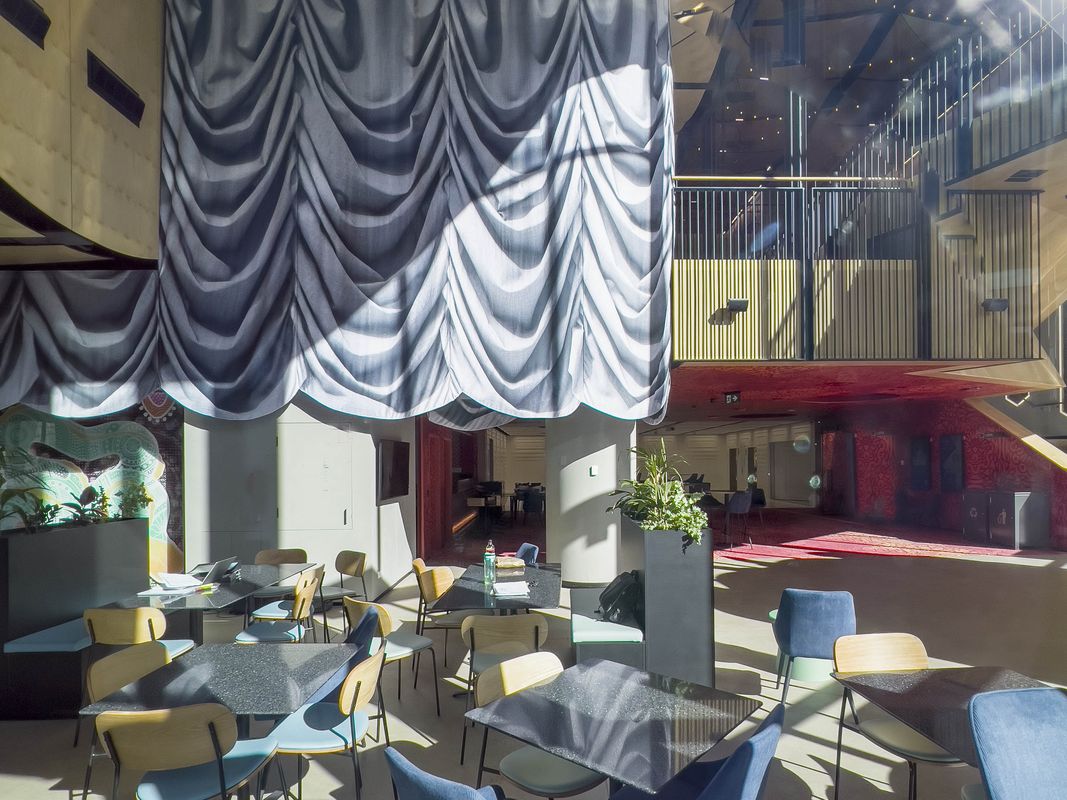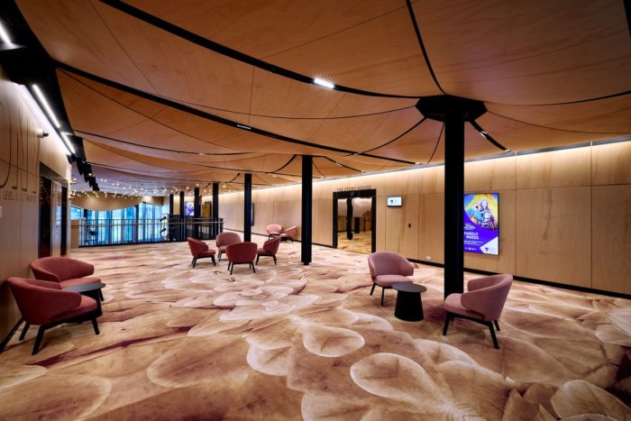 A remarkable facet of the Geelong Arts Centre’s rejuvenation is interweaving traditional stories of land, water, and sky into the architectural design. The building’s different levels draw inspiration from distinct themes: the ochre Country at street level, the Moonah forest on the middle floor, and the sea in the carpet and walls of the 250-seat theater. The night sky finds representation through Bunjil, whose features grace the carpet of the third level. Furthermore, the center collaborated with Indigenous artists residing in Wadawurrung Country to embed their artworks within the building’s spaces, imbuing each area with a unique and evocative character.