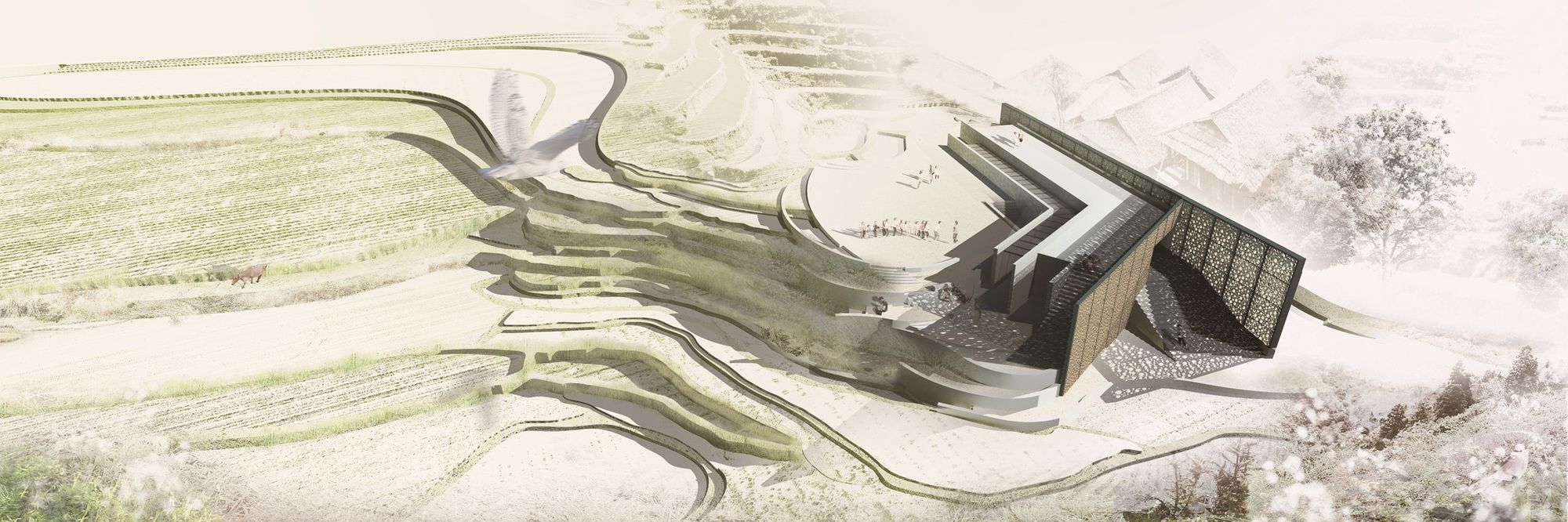 The Dabao project aims at providing the Yaos with a new primary school and a cultural center. Dabao villagers were invited to actively participate in the initial planning of the project, and involved in construction until project completion. The school building is situated within the paddy fields on the mountains of Dabao. The project is designed to merge the building harmoniously with the surrounding landscape. Maintaining a balance between the building and the surrounding environment is a prime consideration for the architectural design of this project.