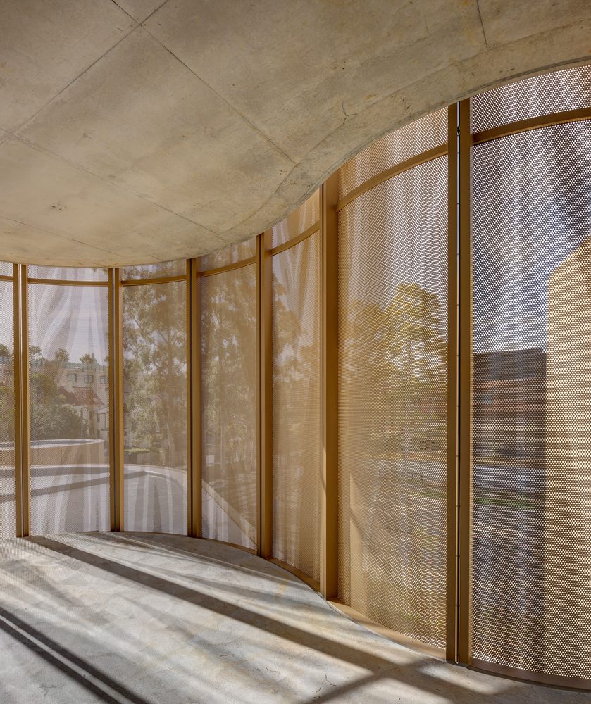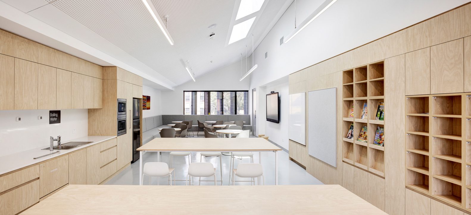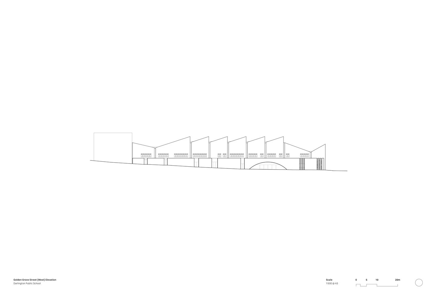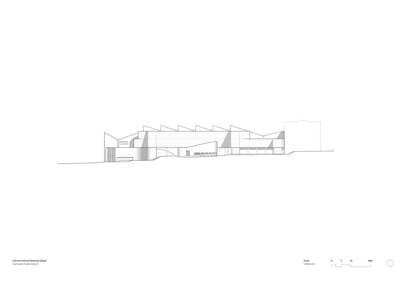 Darlington Public School’s commitment to sustainability is evident through initiatives like rainwater harvesting, natural ventilation, and energy-efficient systems. The design also features sawtooth roofs angled to capture sunlight, high-level glazing for indirect daylight, and protective curved screens for filtered light. The school’s emphasis on blending educational, cultural, and environmental values highlights its role as a community hub that celebrates both its local landscape and its deep connections to Aboriginal heritage.